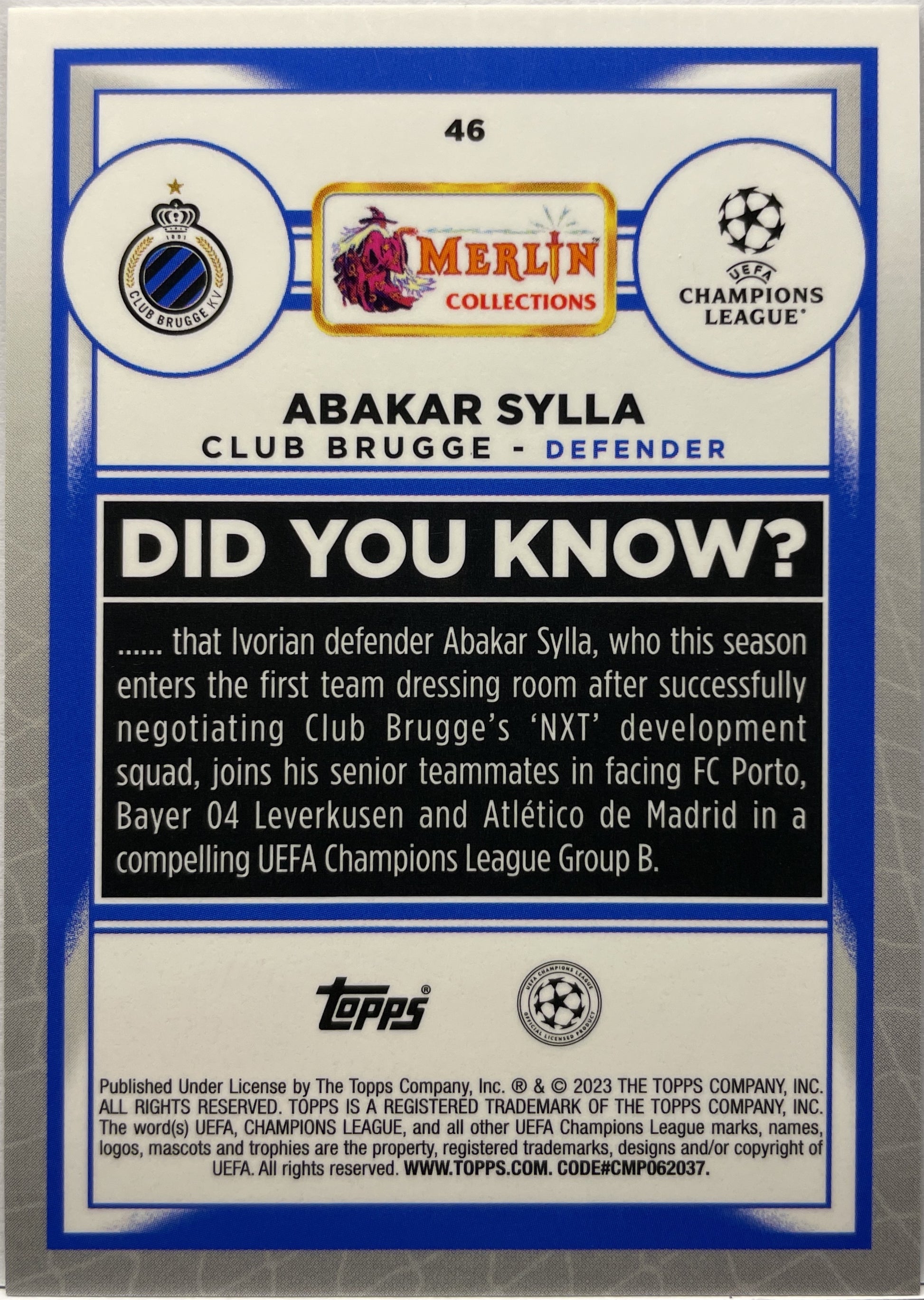 Abakar Sylla 53/75 Rookie Blue Shimmer Topps Chrome Merlin 2022/23 Club Brugge