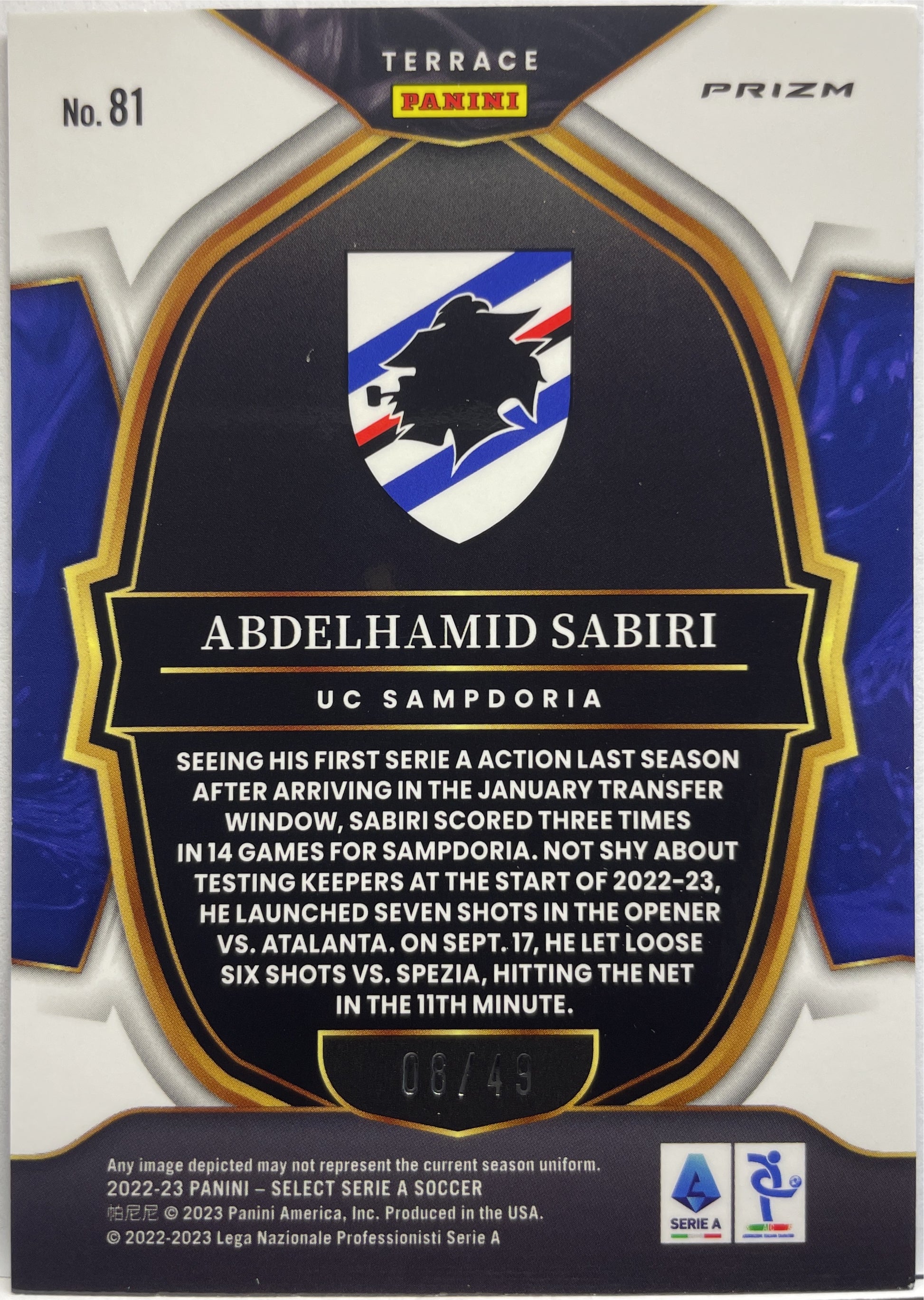 Abdelhamid Sabiri 8/49 Rookie Terrace Purple Select Serie A 2022/23 UC Sampdoria