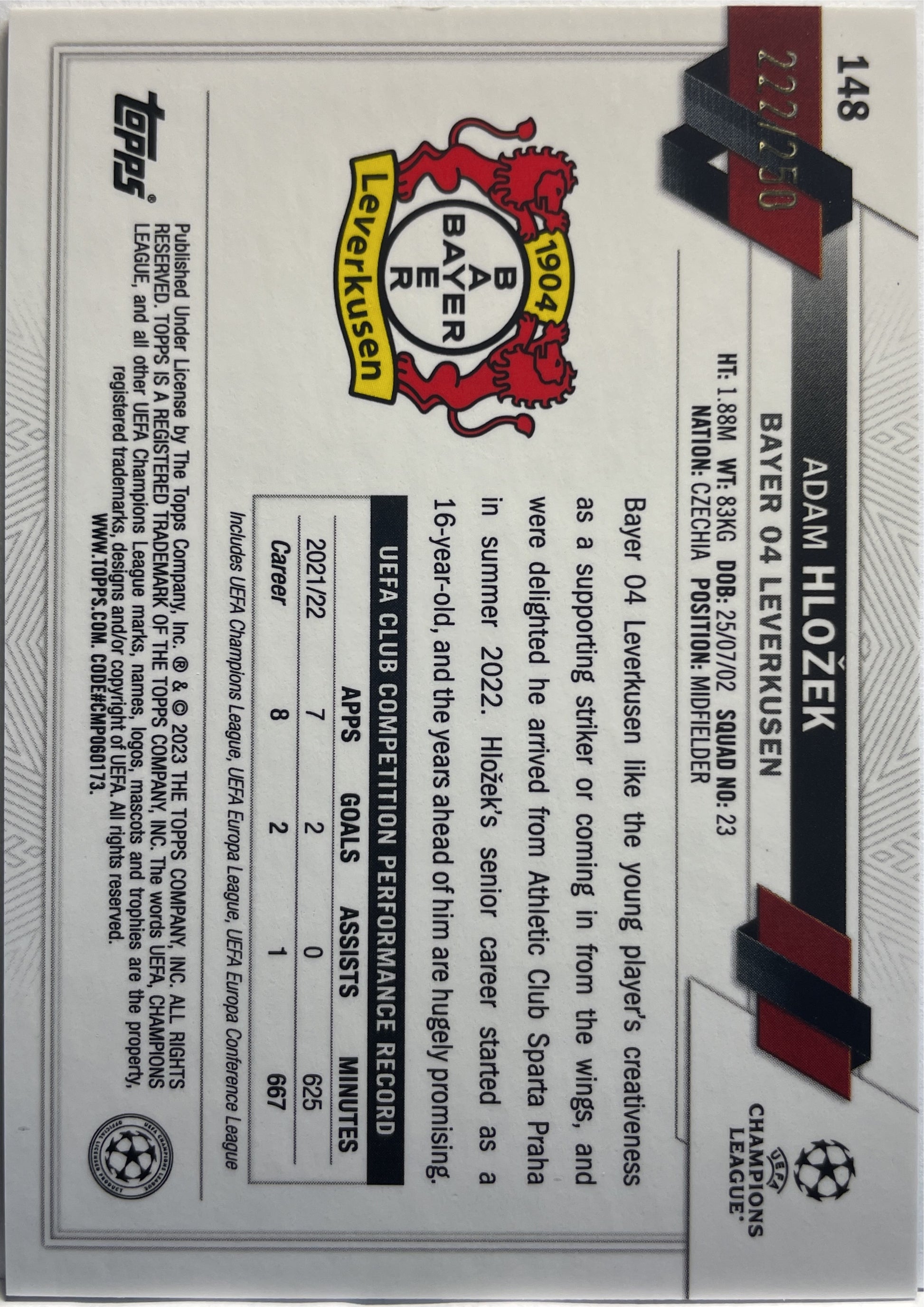 Adam Hlozek 222/250 Pink Shimmer Refractor Topps Chrome UCC 2022/23 Bayern 04 Leverkusen