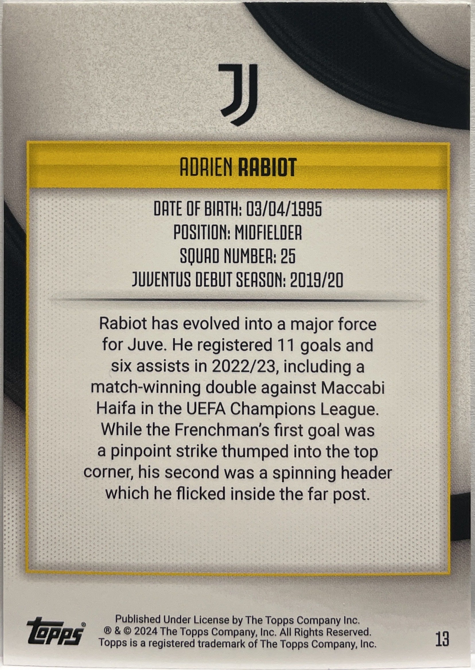 Adrien Rabiot 1/1 One Of One Topps Juventus Team Set 2023/24