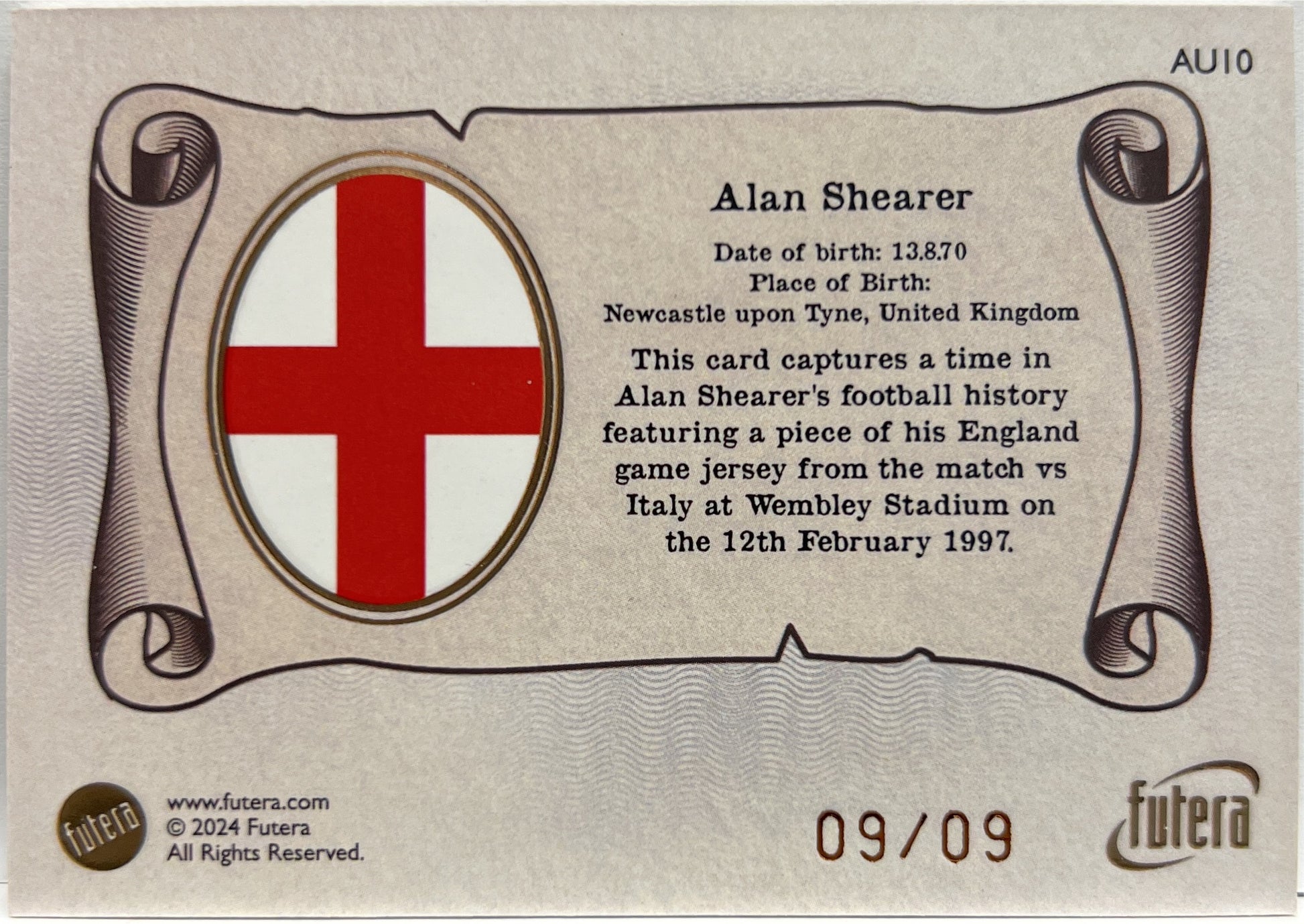 Alan Shearer 9/9 Patch Football Futera 2024 England