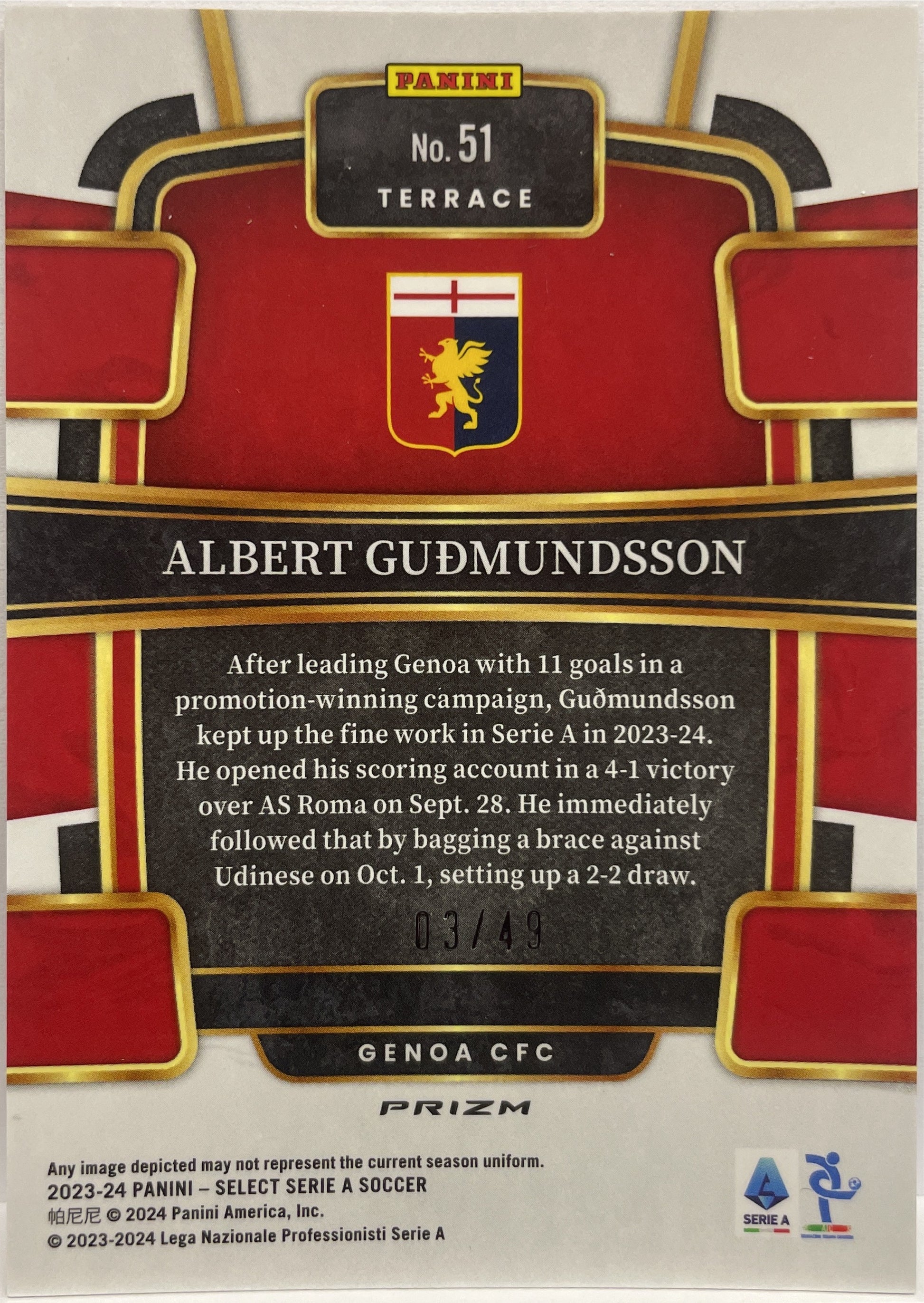 Albert Gudmundsson 3/49 Rookie Terrace Red Wave Select Serie A 2023/24 Genoa CFC