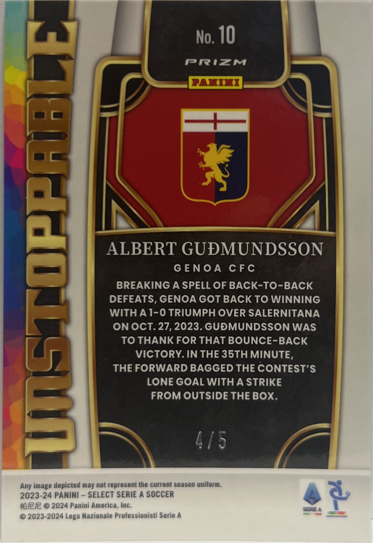 Albert Gudmundsson 4/5 Rookie Unstoppable Green Select Serie A 2023/24 Genoa CFC
