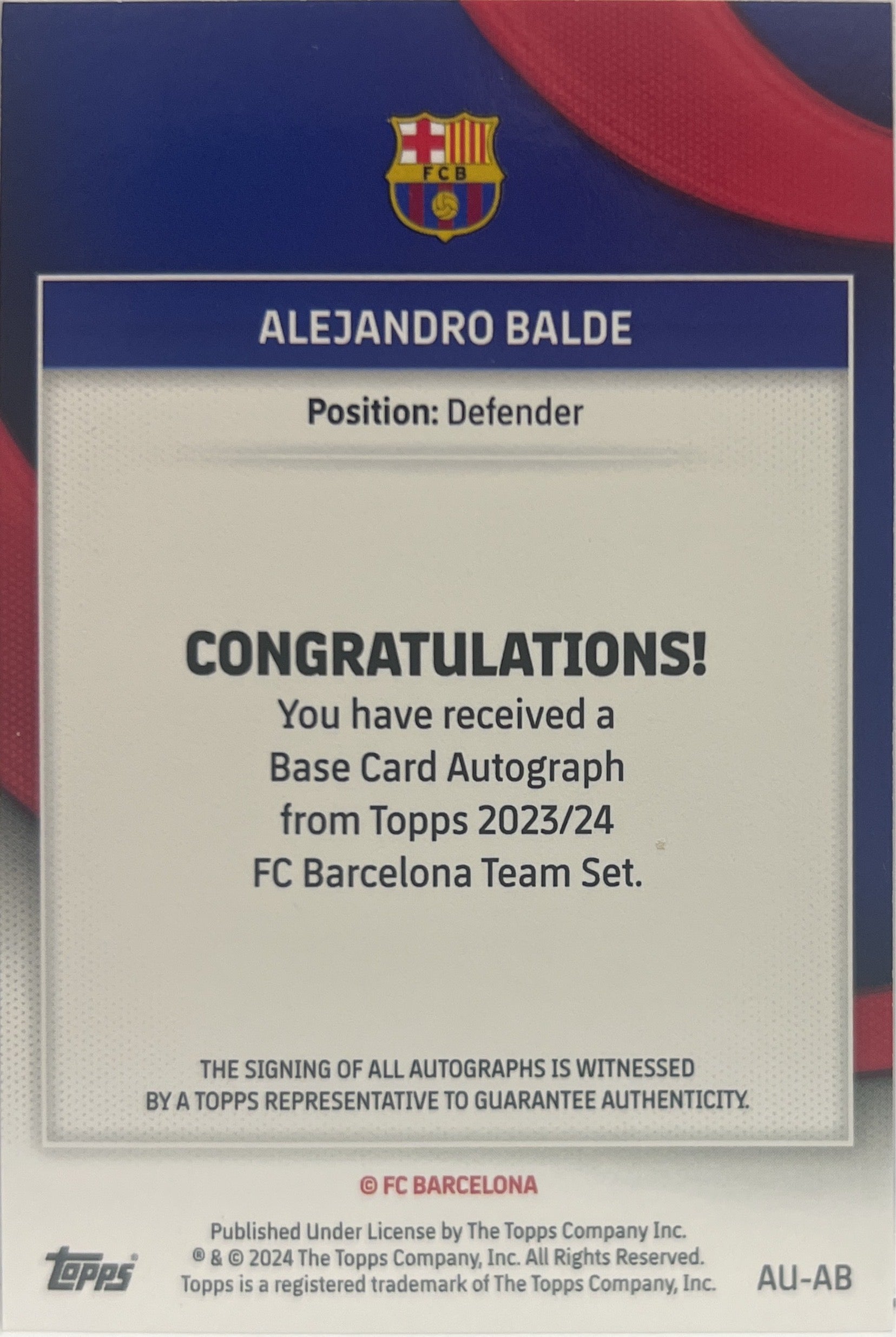 Alejandro Balde 22/99 Autograph Topps Team Set Barcelona 2023/24