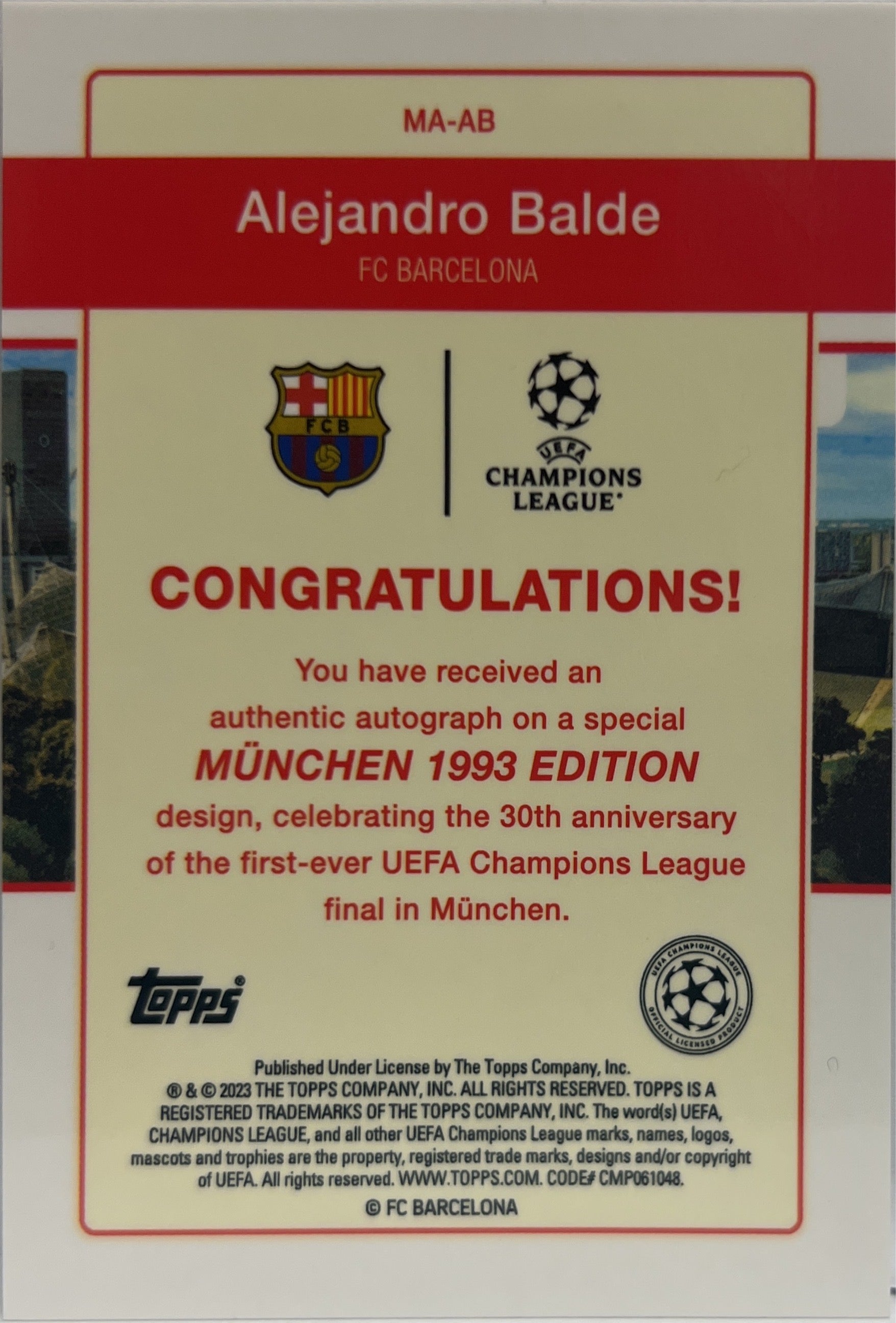 Alejandro Balde Autograph Munchen 93 Edition Topps Superstars UCL 2022/23 FC Barcelona