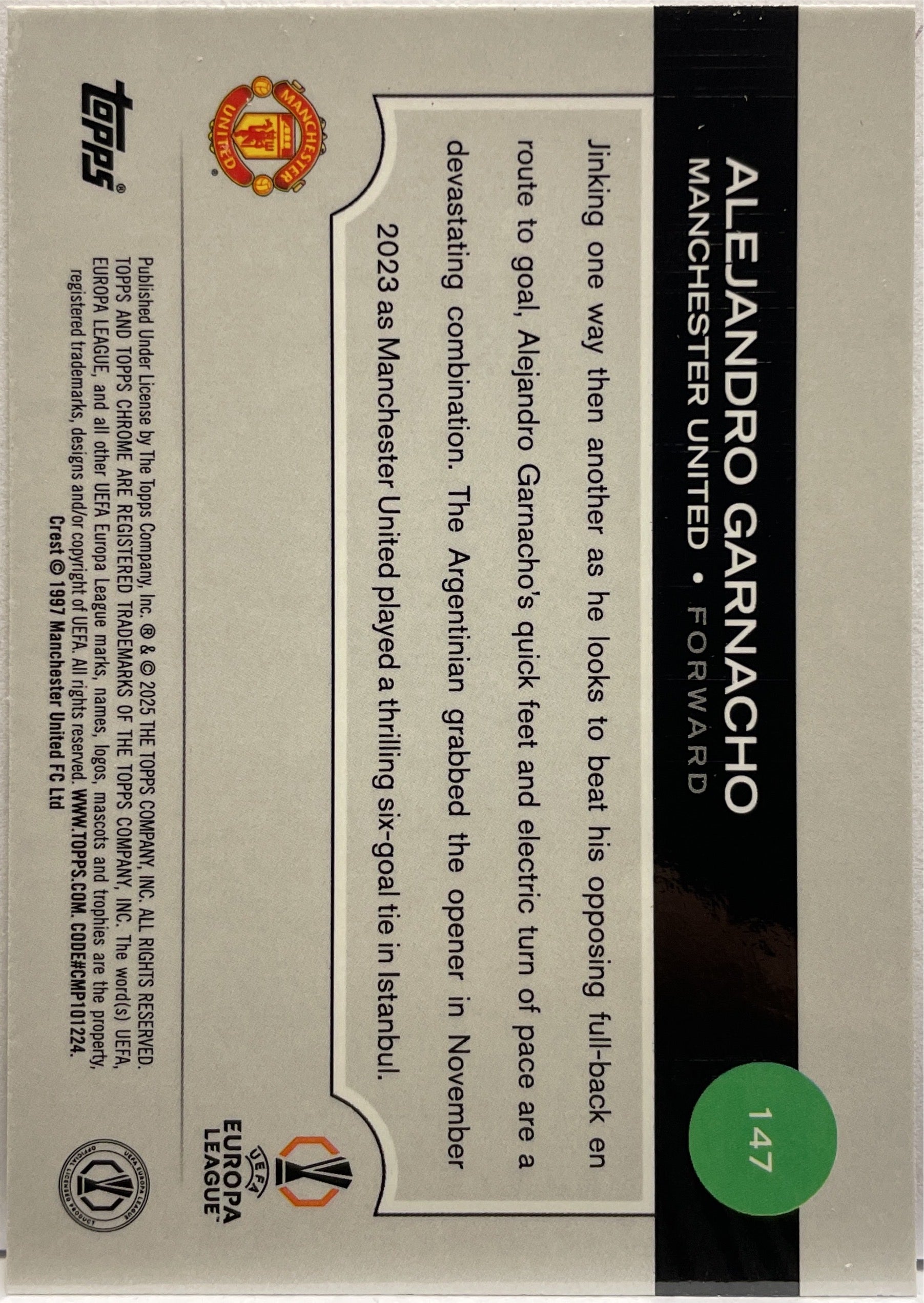 Alejandro Garnacho 22/250 Pink Lava Topps Chrome UCC 2024/25 Manchester United