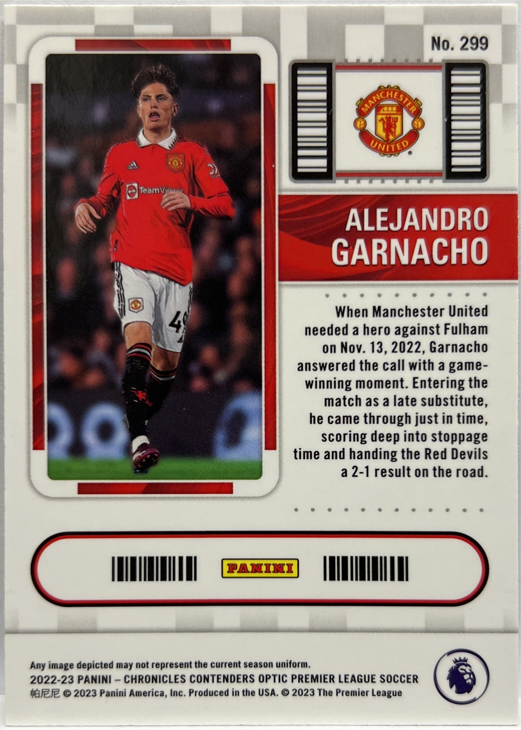 Alejandro Garnacho Rookie Ticket Optic Contenders Chronicles Premier League 2022/23