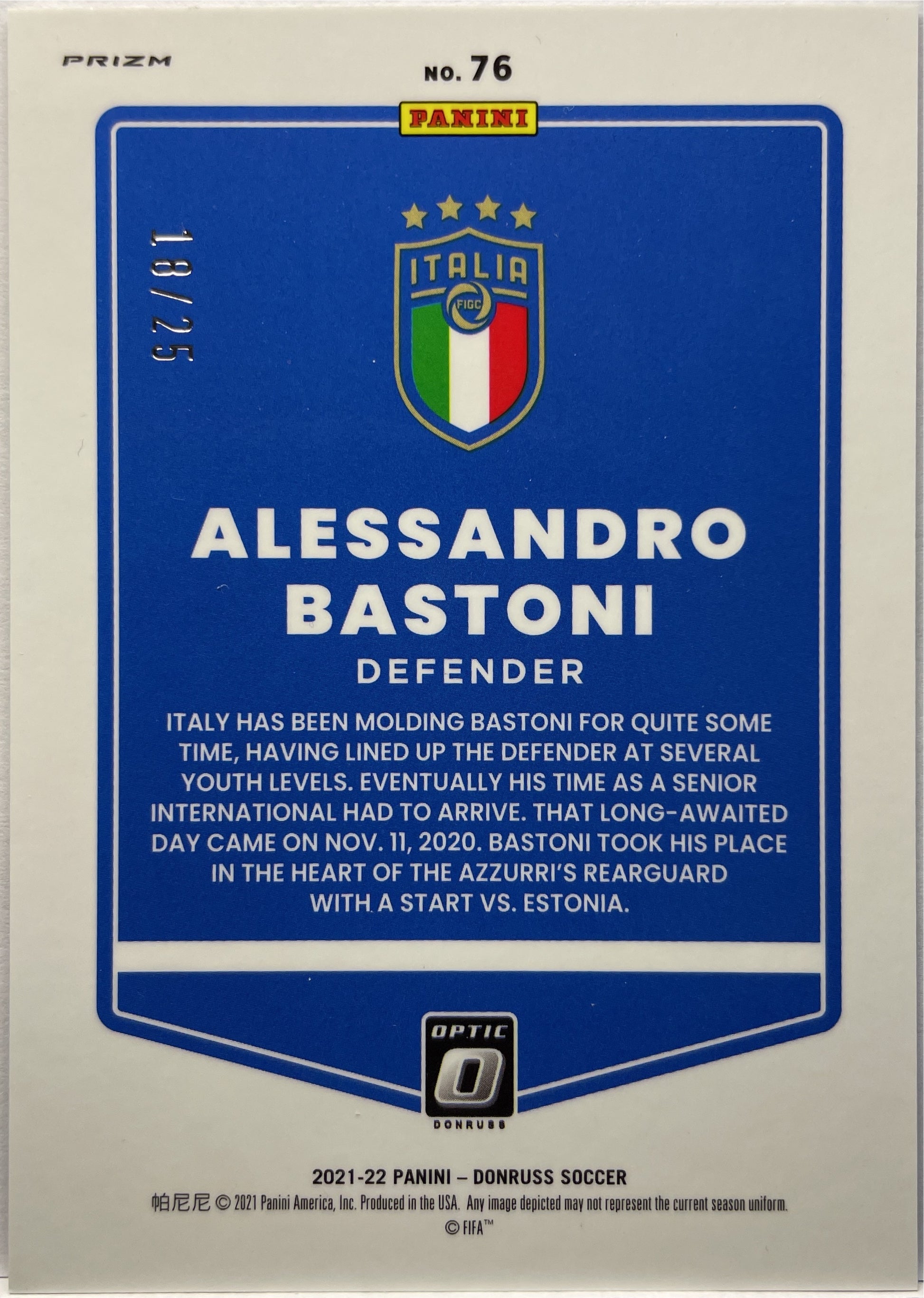 Alessandro Bastoni 18/25 Optic Black Velocity Donruss Road To Qatar 2021/22 Italy