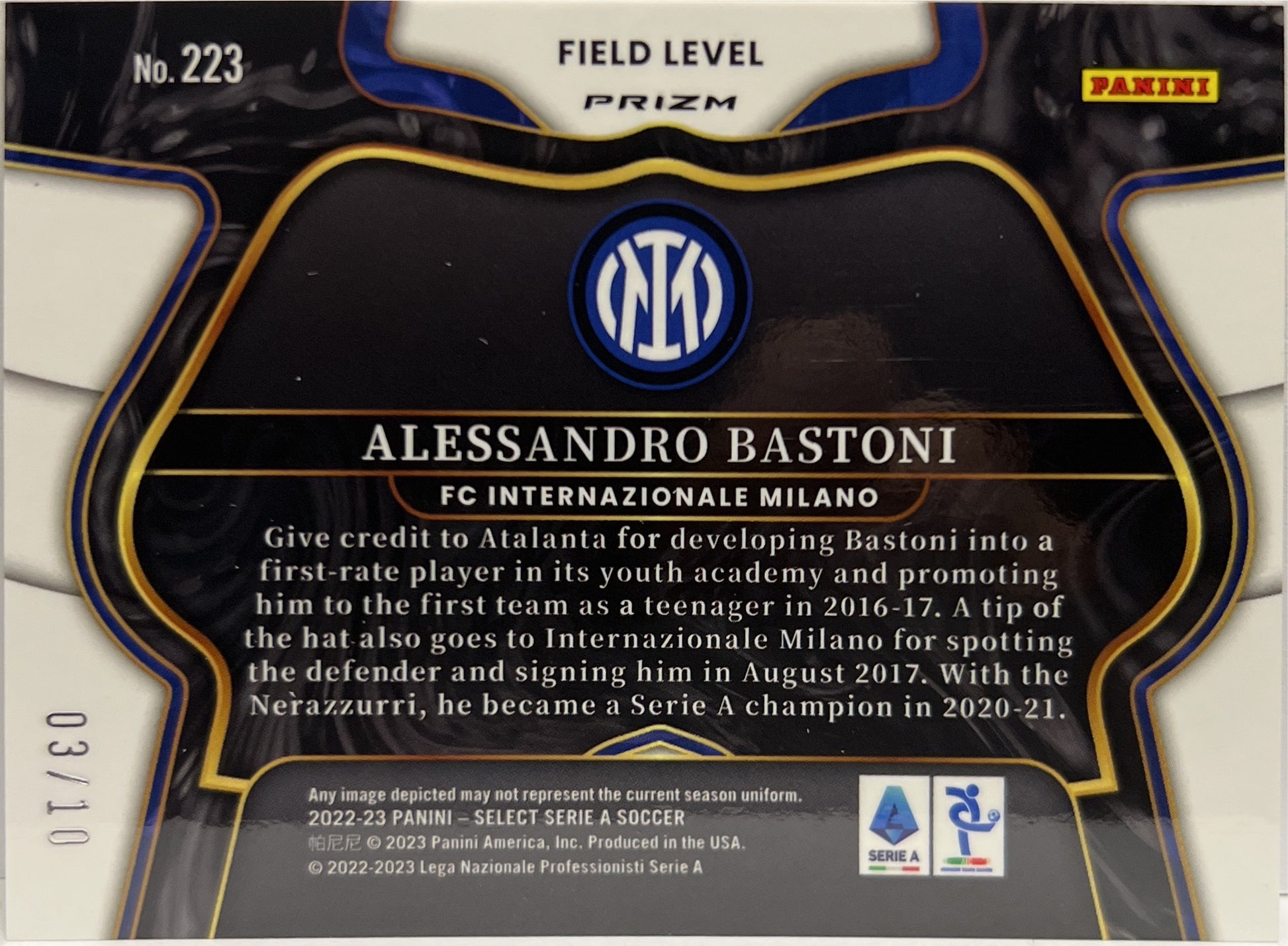 Alessandro Bastoni 3/10 Field Level Gold Select Serie A 2022/23 FC Internazionale Milano