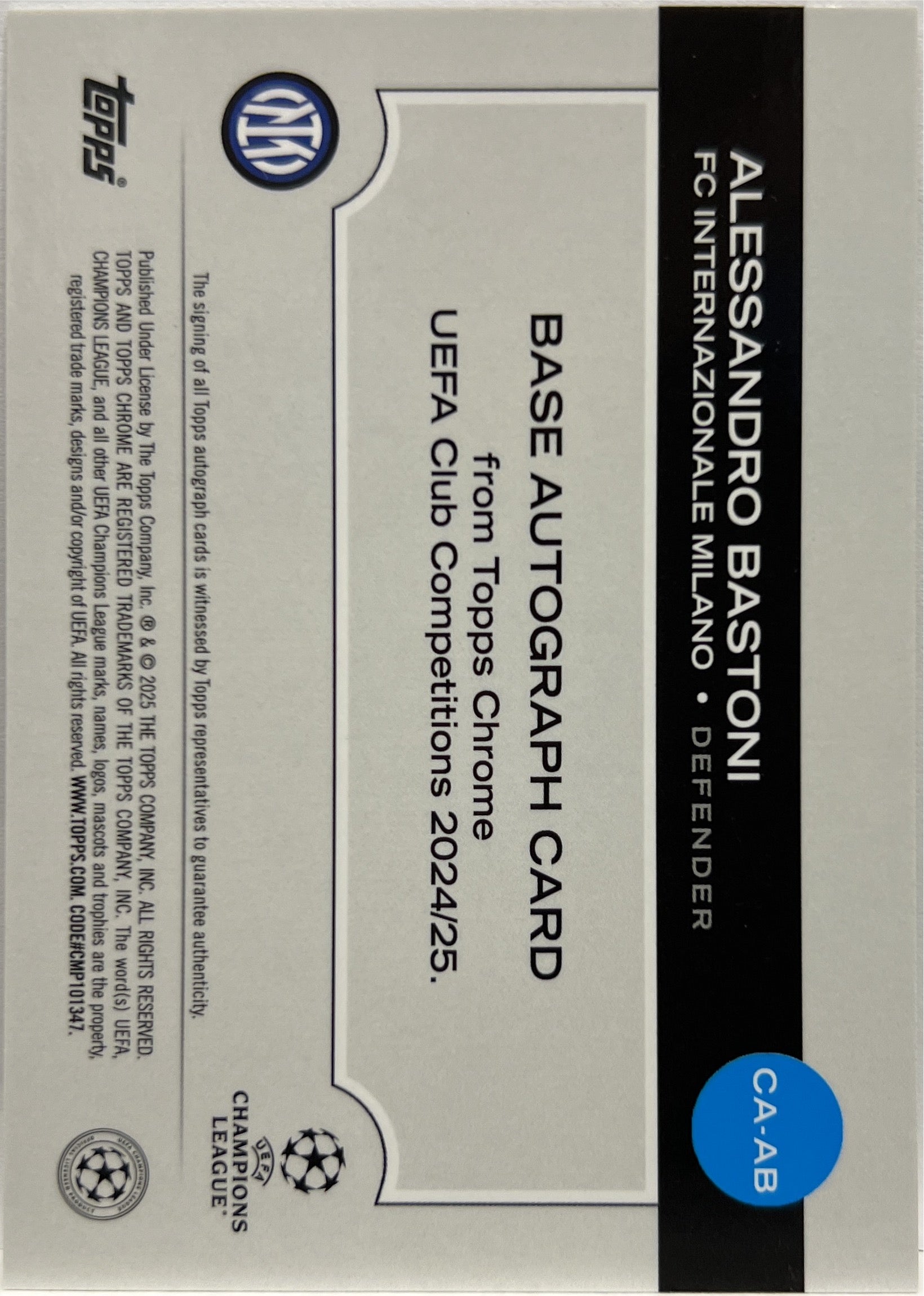 Alessandro Bastoni 48/50 Autograph Gold Lava Topps Chrome UCC 2024/25 FC Internazionale Milano