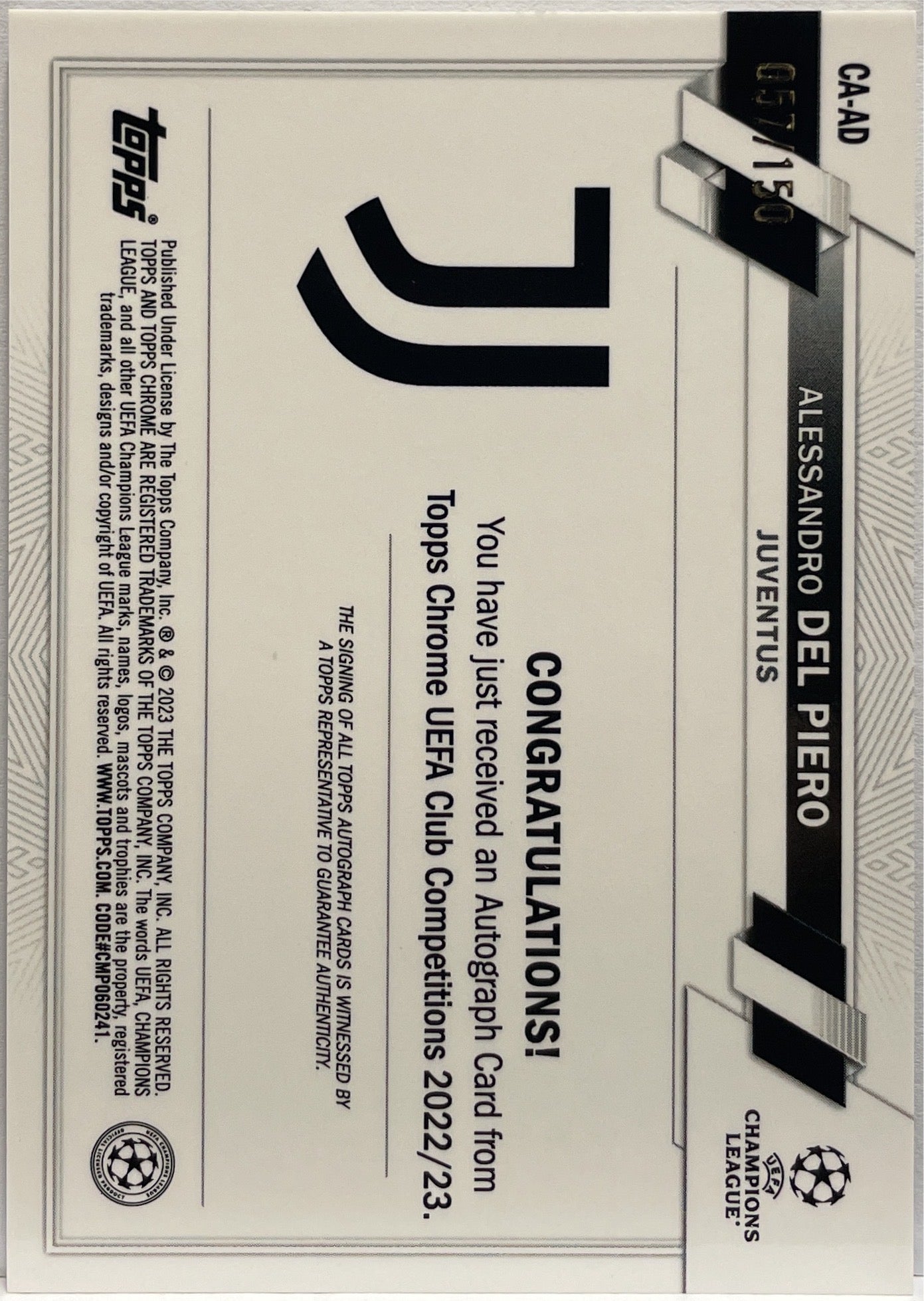 Alessandro Del Piero 57/150 Autograph Blue Topps Chrome UCC 2022/23