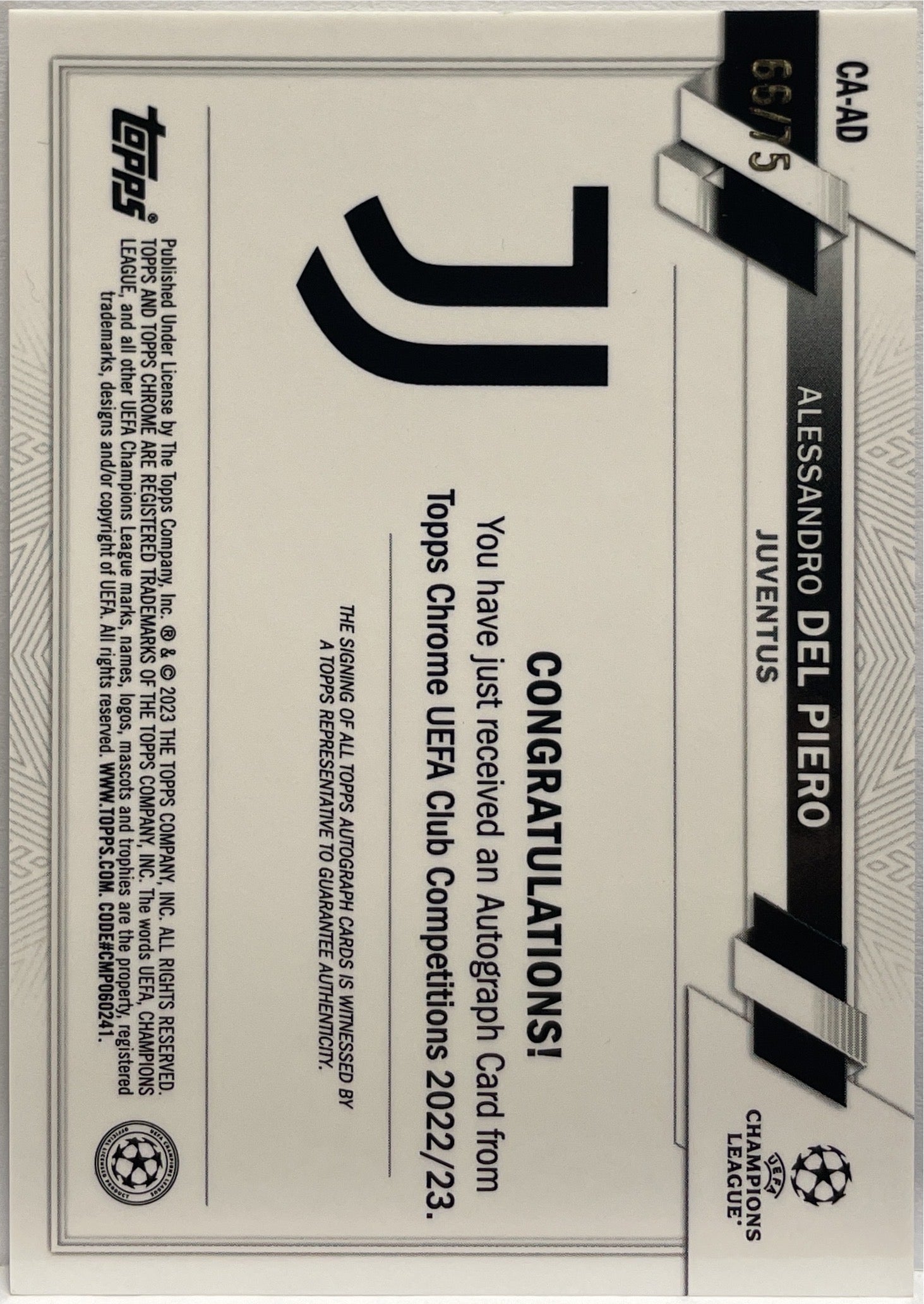 Alessandro Del Piero 66/75 Autograph Blue Shimmer Topps Chrome UCC 2022/23