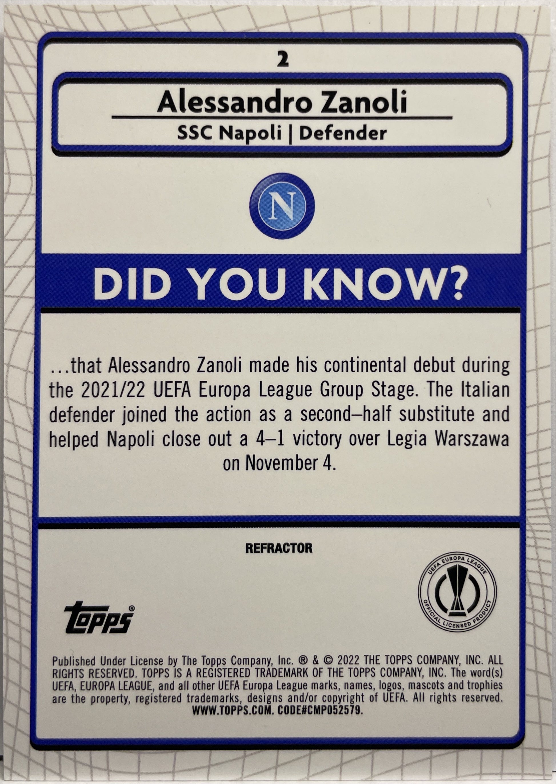 Alessandro Zanoli Rookie Topps Merlin 2021/22 SSC Napoli