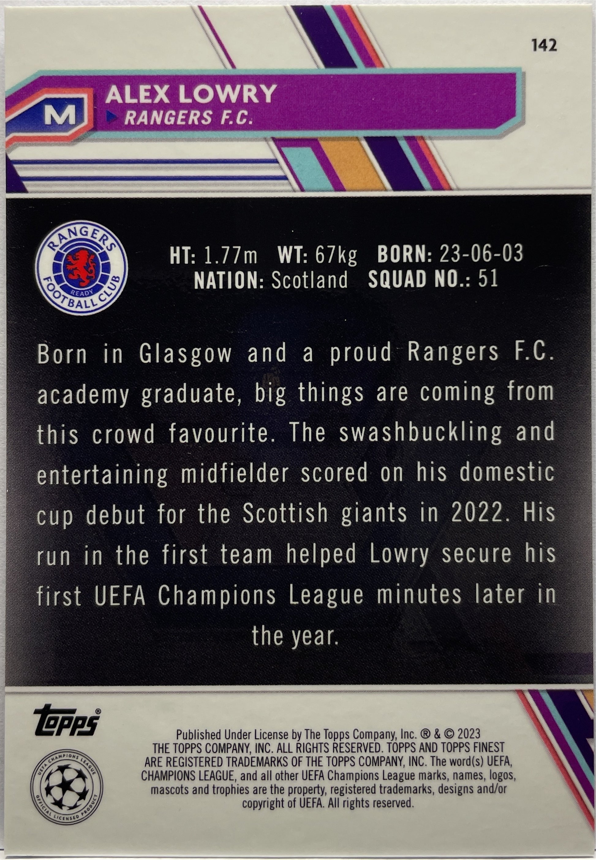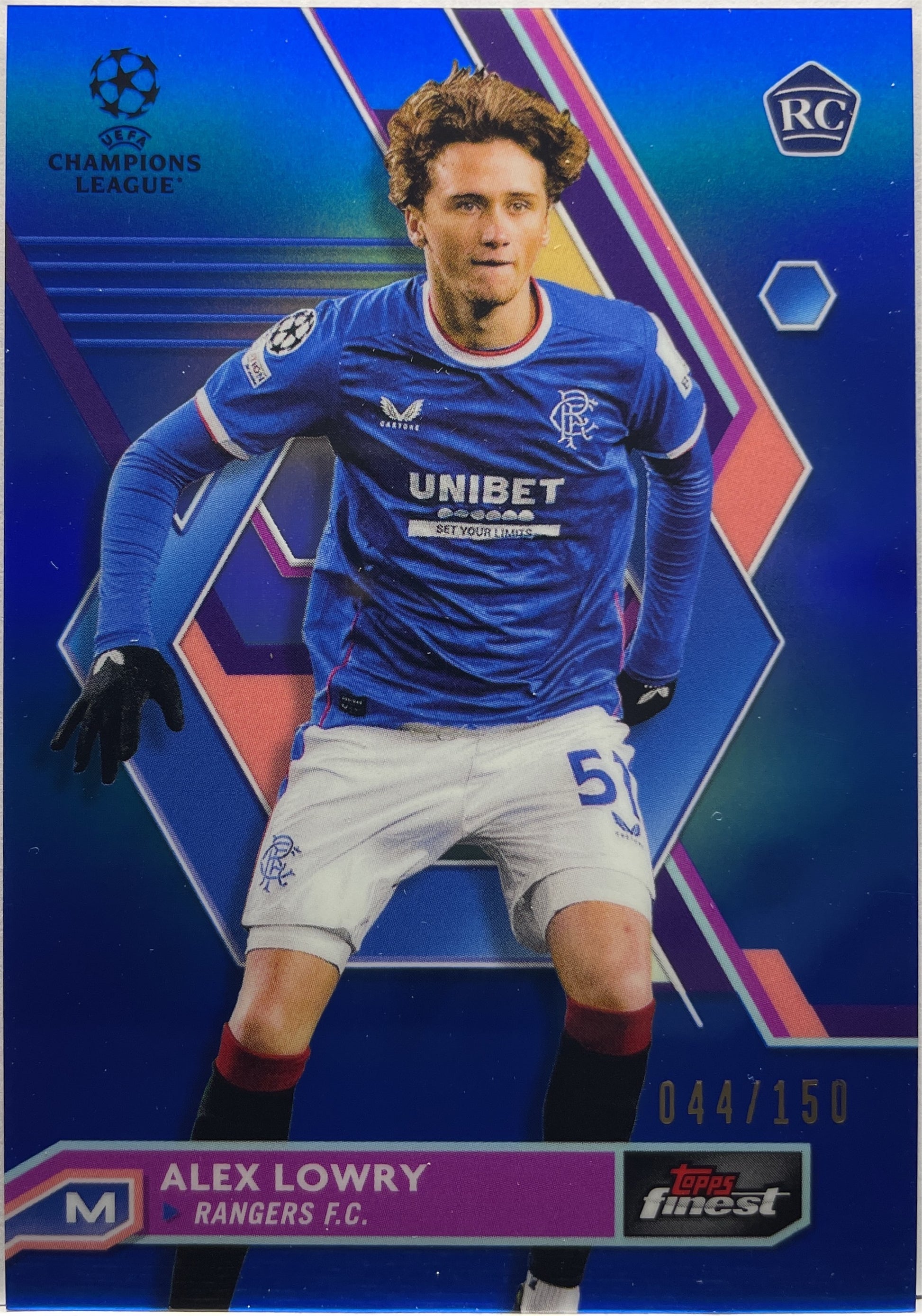Alex Lowry 44/150 Rookie Blue Topps Finest UCC 2022/23 Rangers FC