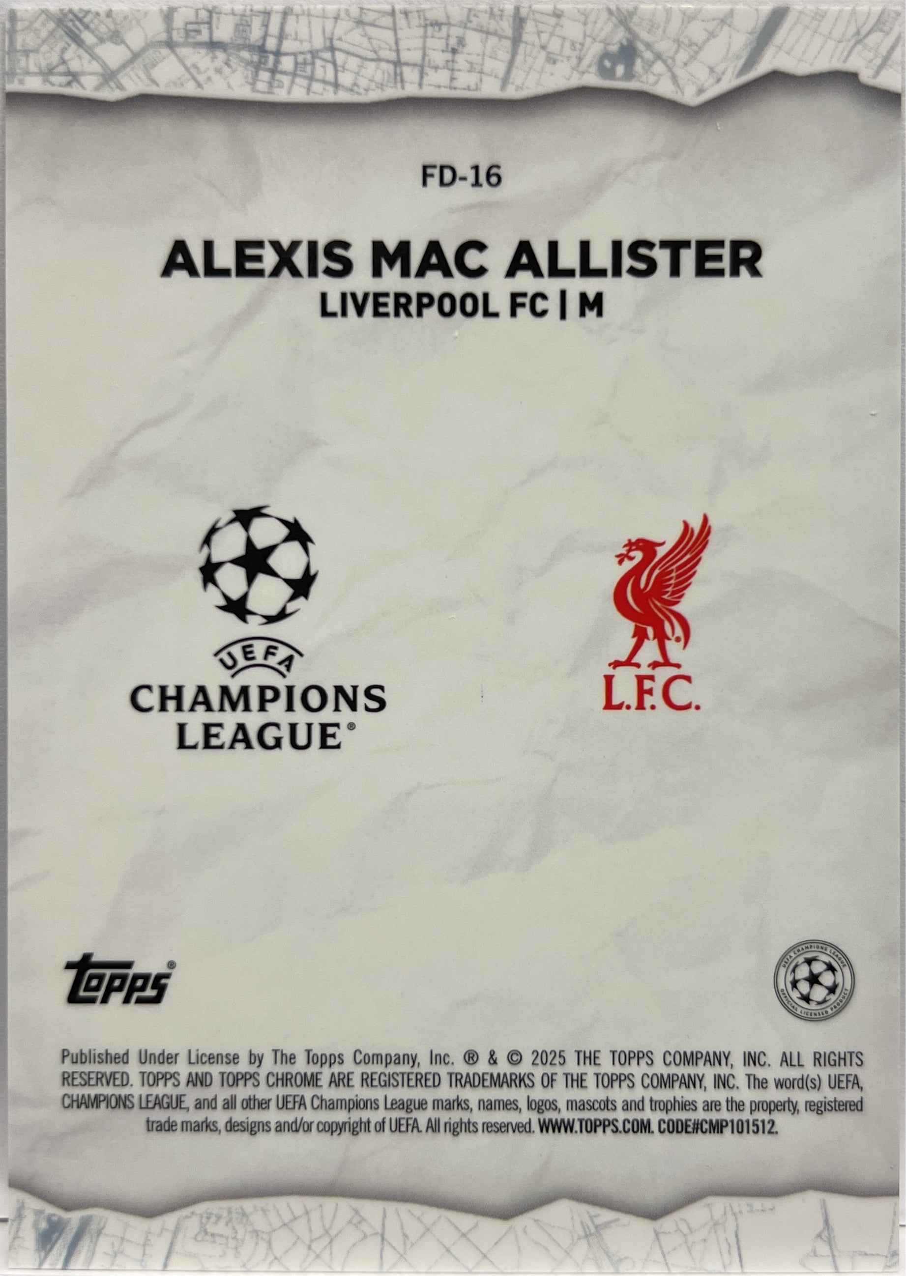 Alexis Mac Allister 13/50 Final Destination Gold Topps Chrome UCC 2024/25 Liverpool