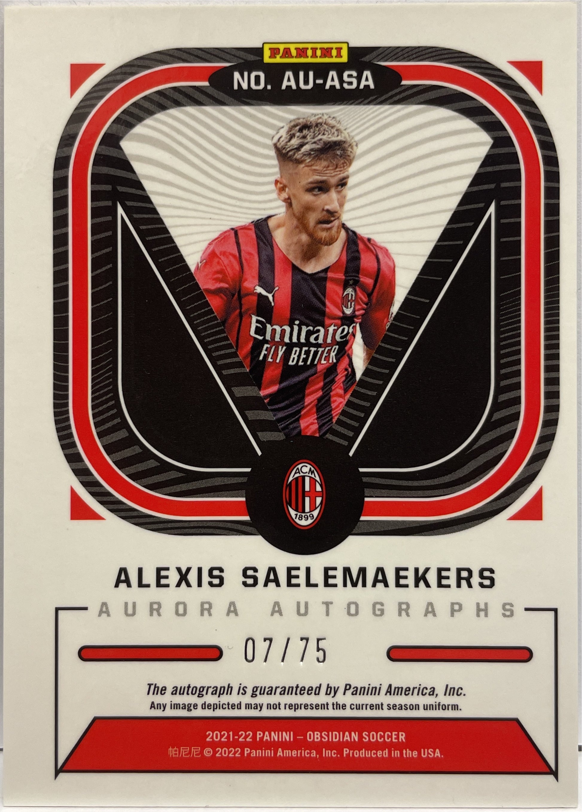 Alexis Saelemaekers 7/75 Autograph Aurora Obsidian 2021/22 AC Milan