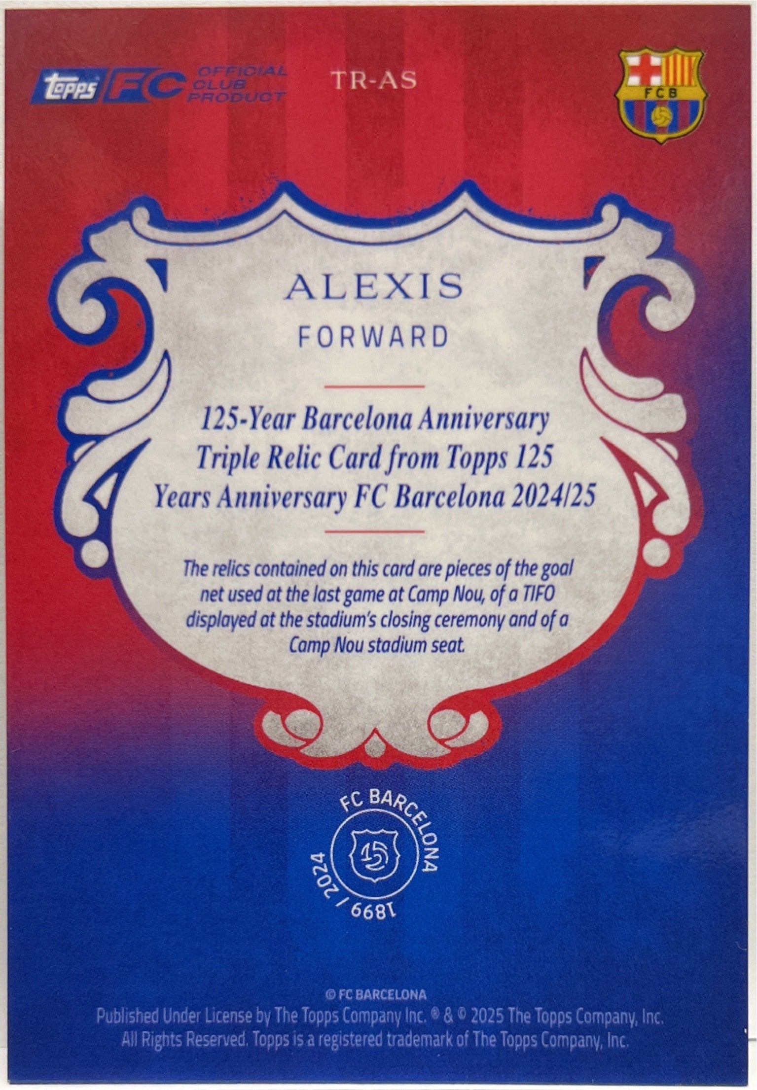 Alexis Sanchez 4/10 Patch Triple Relic Topps Barcelona 125 2024/25
