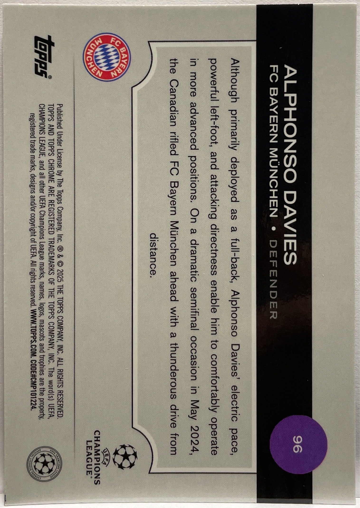Alphonso Davies 170/250 Pink Topps Chrome UCC 2024/25 FC Bayern Munchen