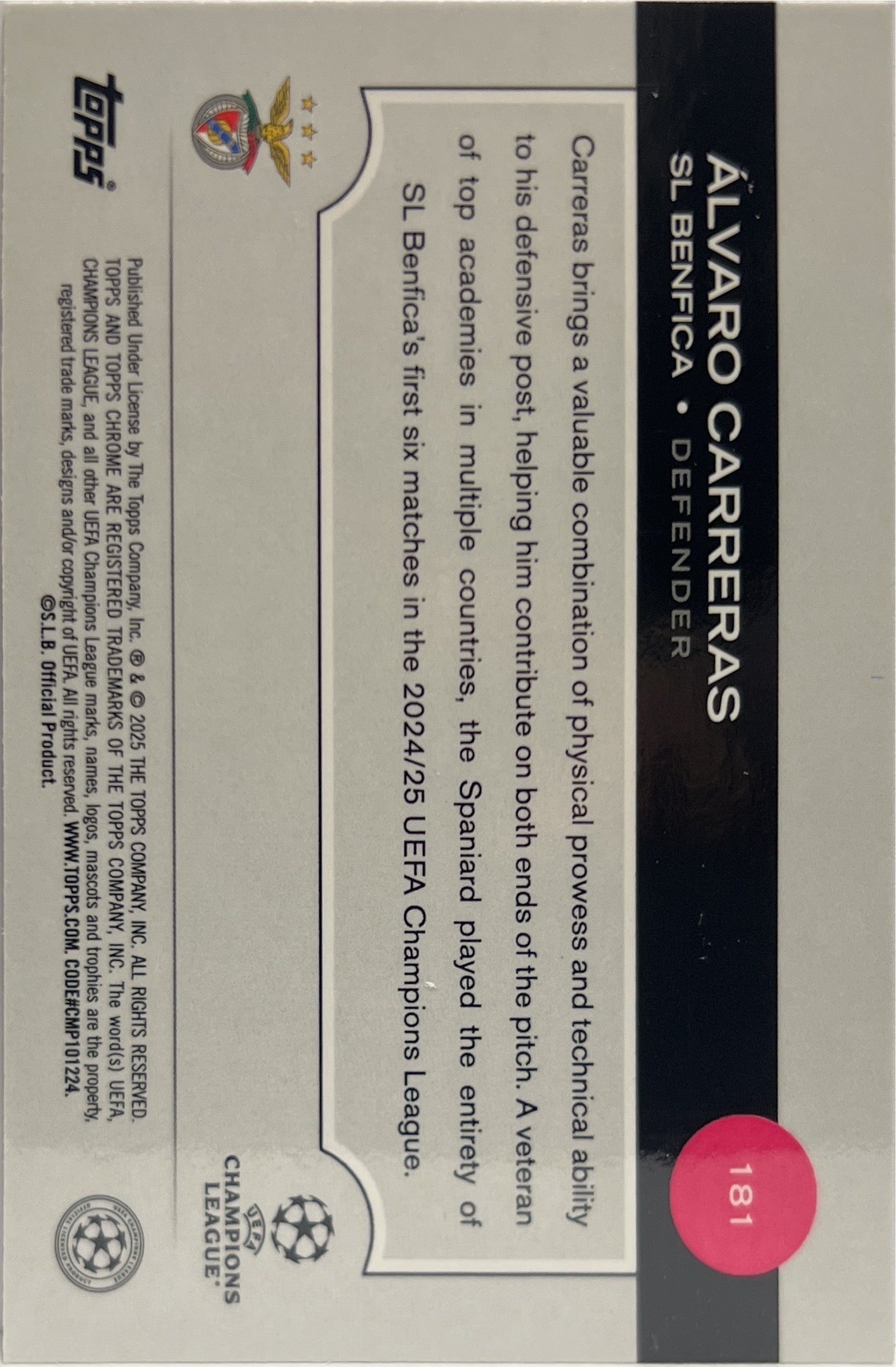 Alvaro Carreras 48/75 Rookie Magenta Lava Topps Chrome UCC 2024/25 SL Benfica
