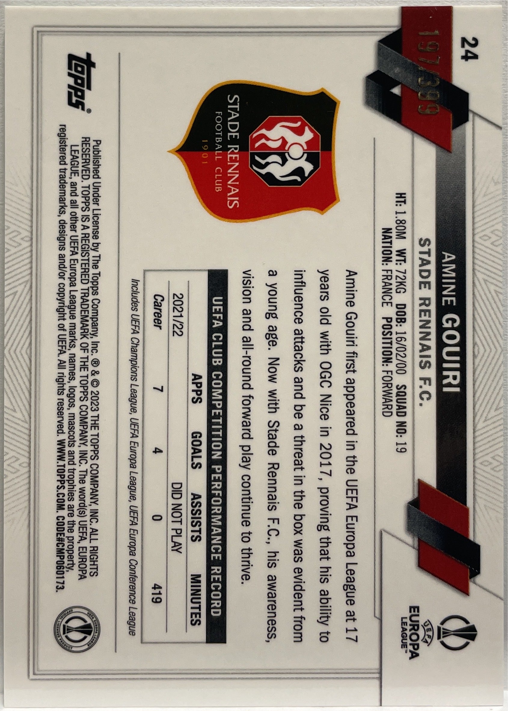 Amine Gouiri 197/399 Rookie Green Shimmer Topps Chrome UCC 2022/23 Stade Rennais FC