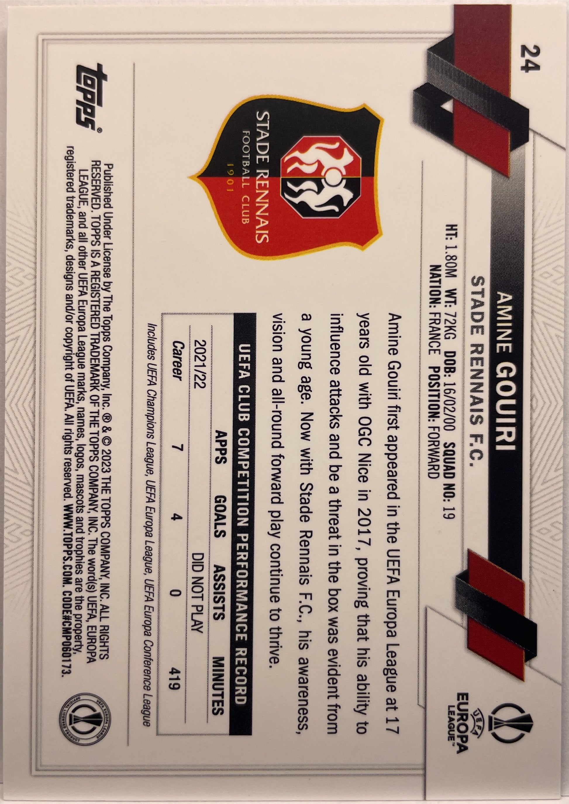 Amine Gouiri Rookie Purple&Gold Seismic Topps Chrome UCC 2022/23 Stade Rennais FC