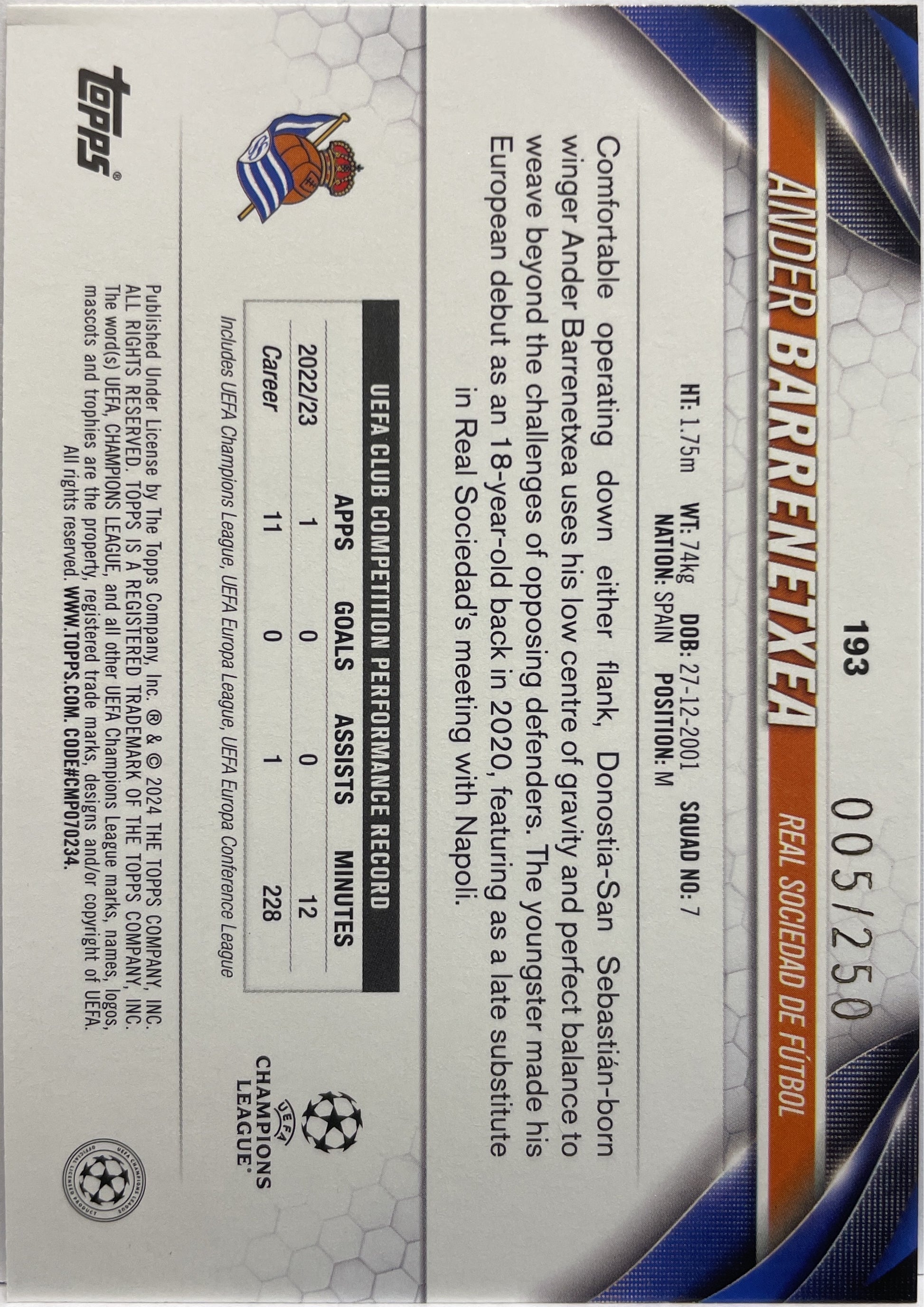 Ander Barrenetxea 5/250 Navy Blue Topps UCC 2023/24 Real Sociedad De Futbol