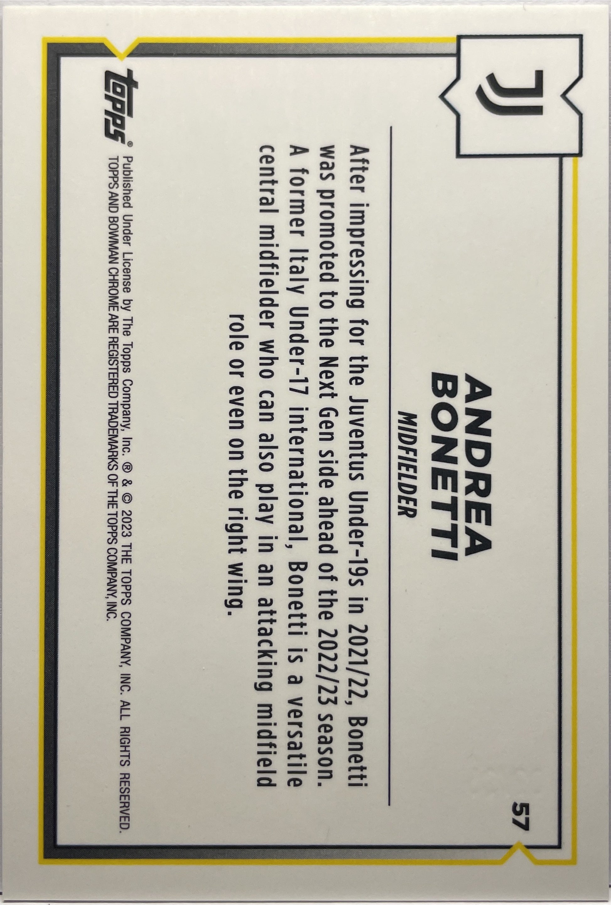 Andrea Bonetti 12/25 1ST Bowman Orange Topps Chrome Juventus 2022/23