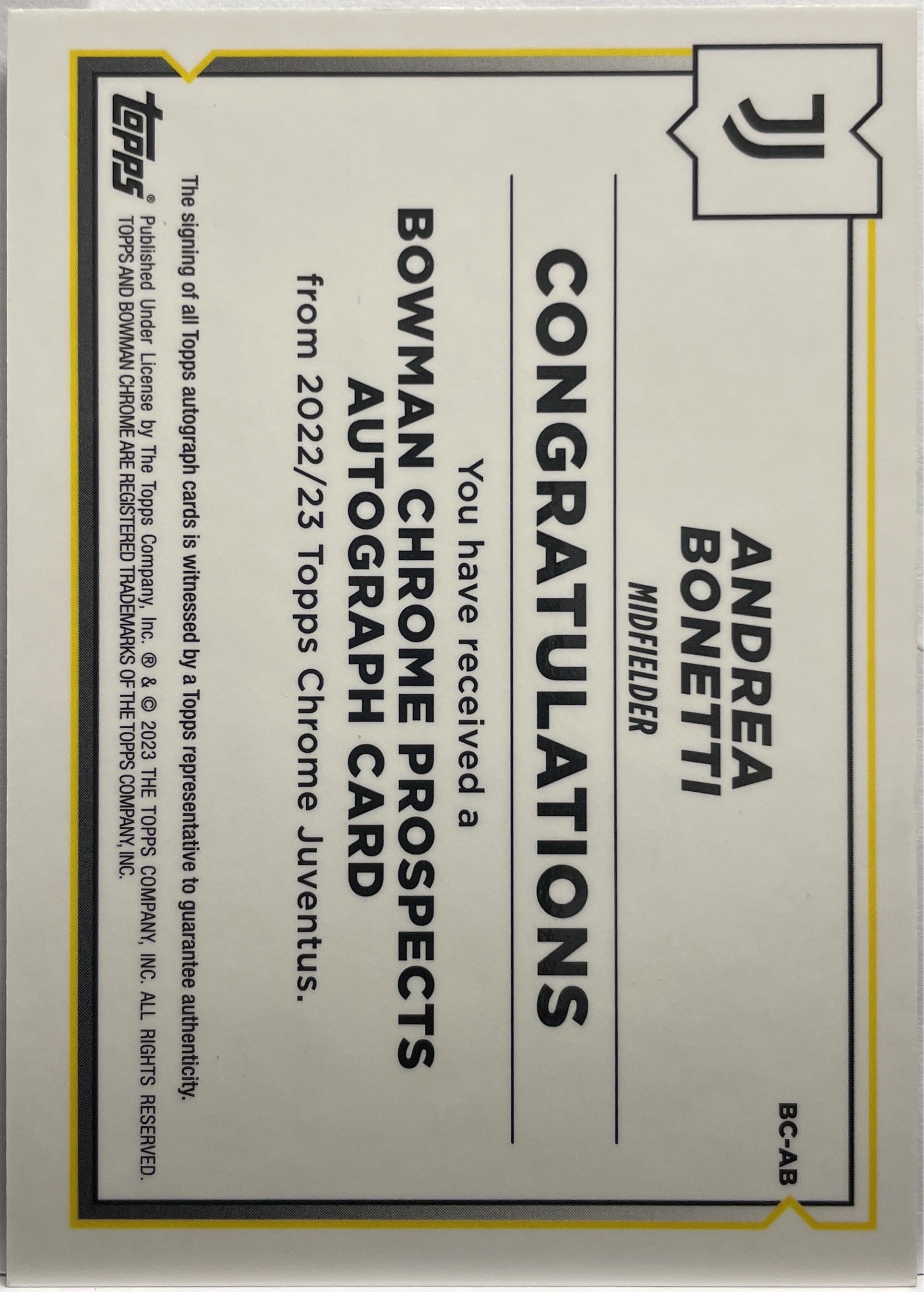 Andrea Bonetti 17/75 Autograph 1ST Bowman Zebra Topps Chrome Juventus 2022/23