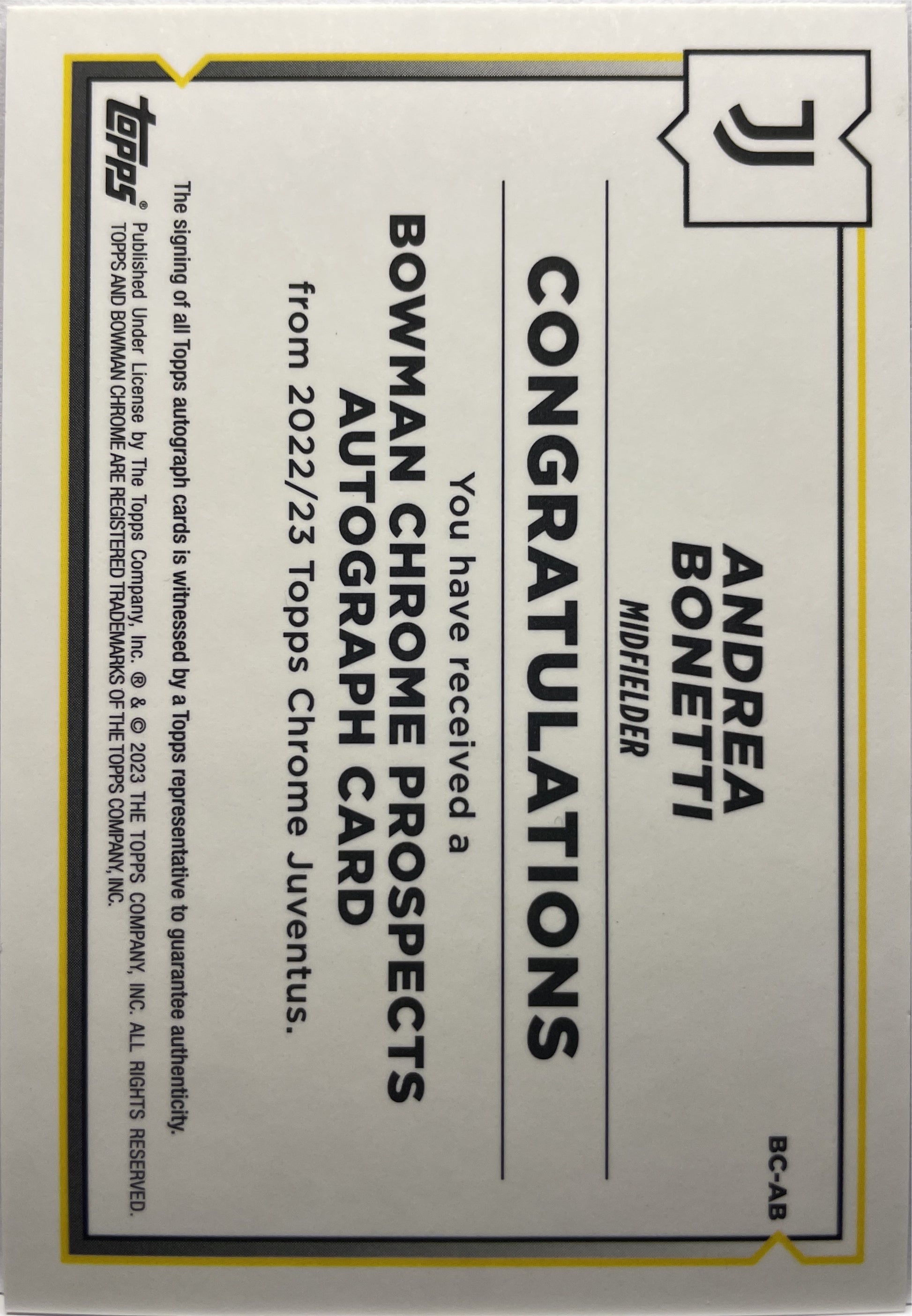 Andrea Bonetti 4/5 Autograph 1ST Bowman Red Topps Chrome Juventus 2022/23