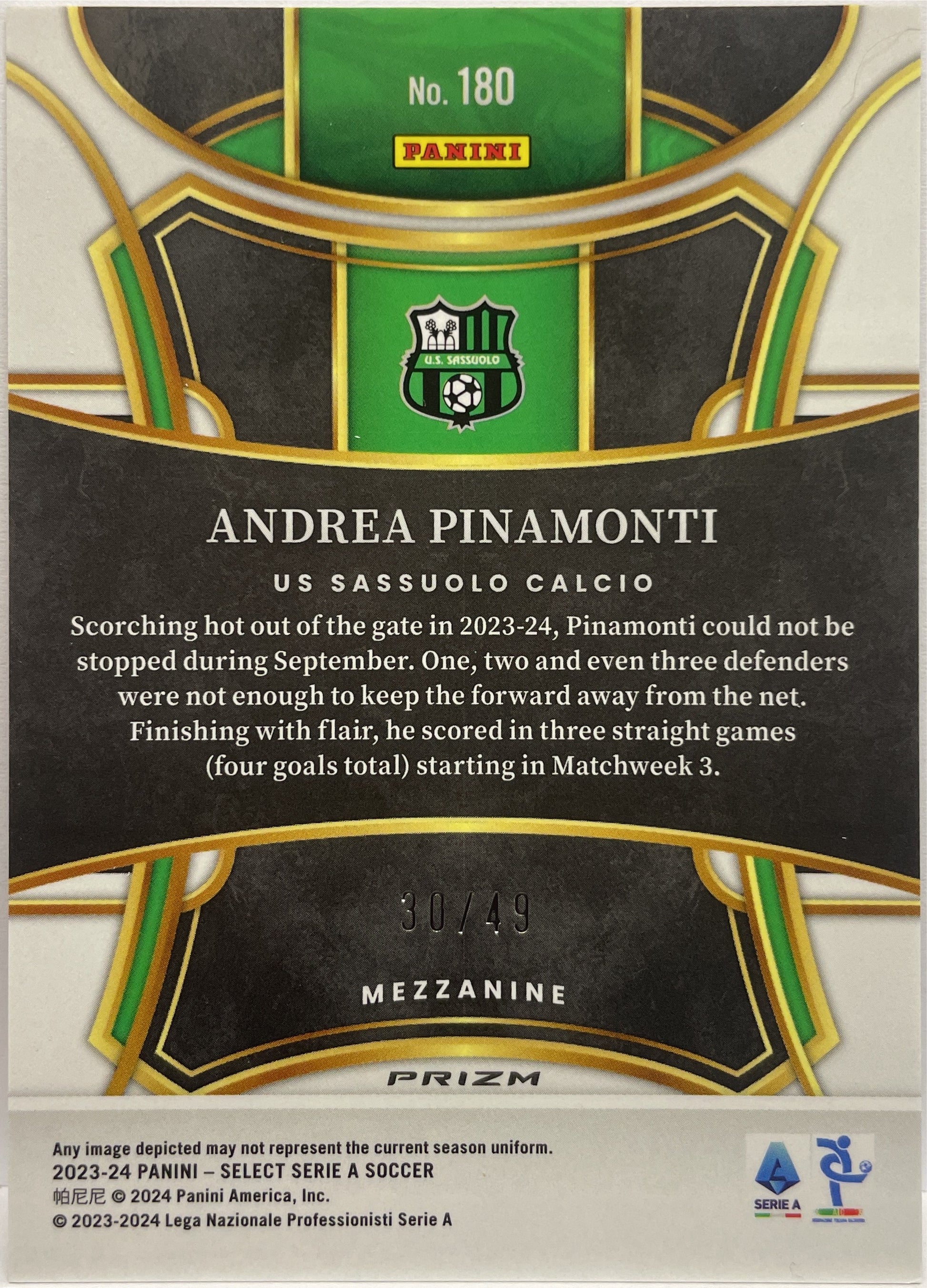 Andrea Pinamonti 30/49 Mezzanine Red Wave Select Serie A 2023/24 US Sassuolo Calcio
