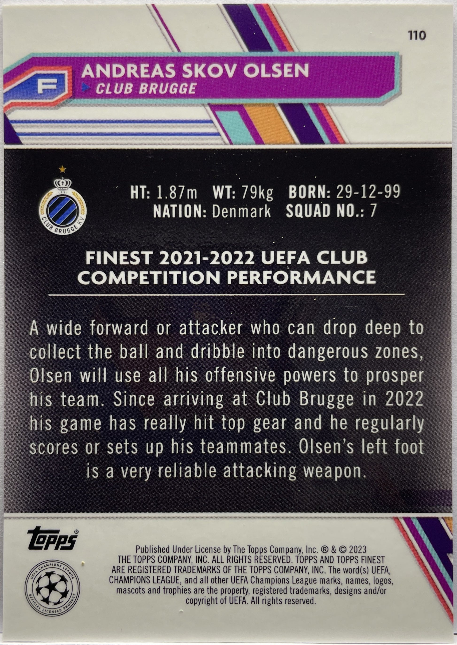 Andreas Skov Olsen 222/299 Purple Topps Finest UCC 2022/23 Club Brugge