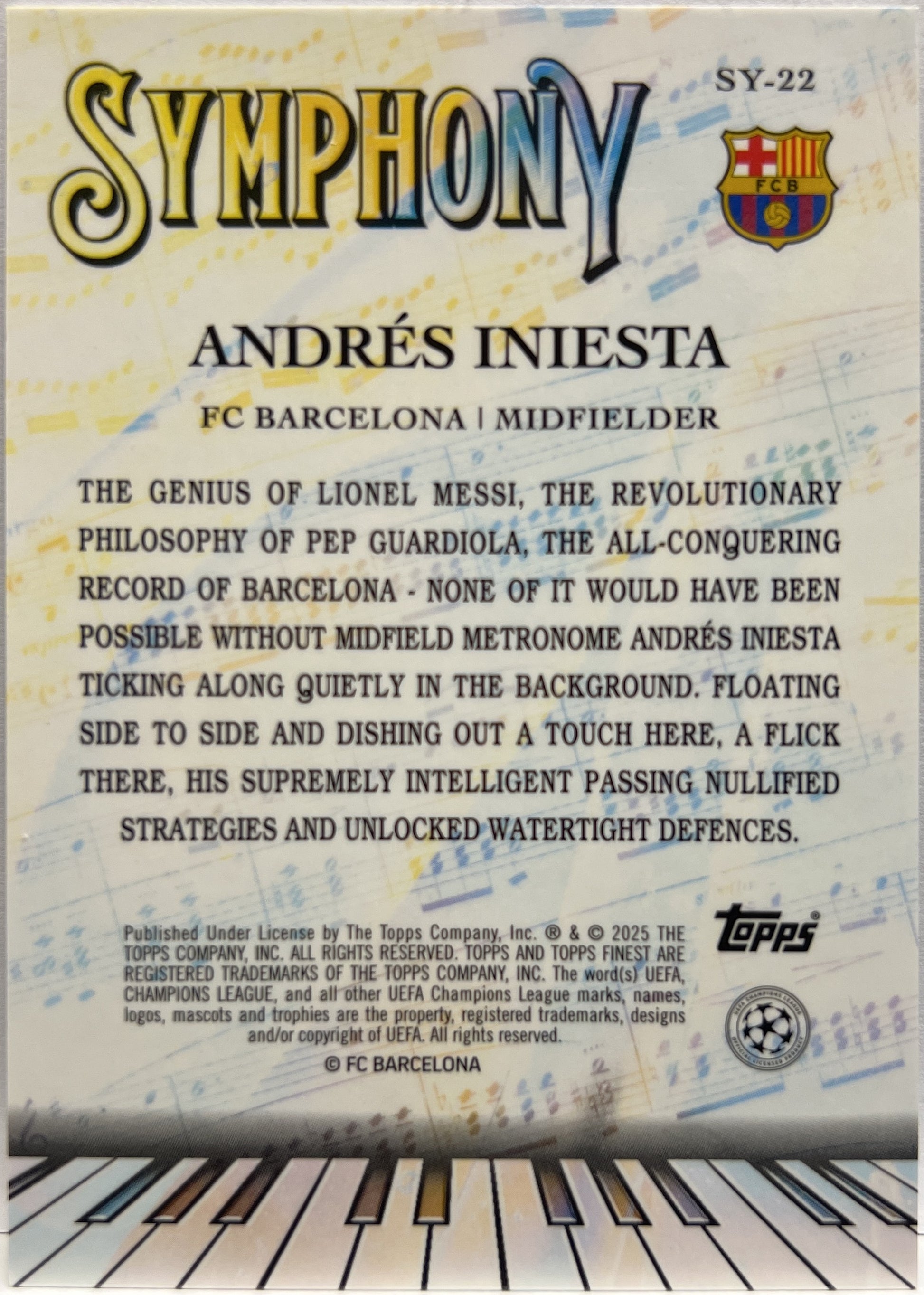 Andres Iniesta 36/150 Symphony Blue Topps Finest UCC 2024/25