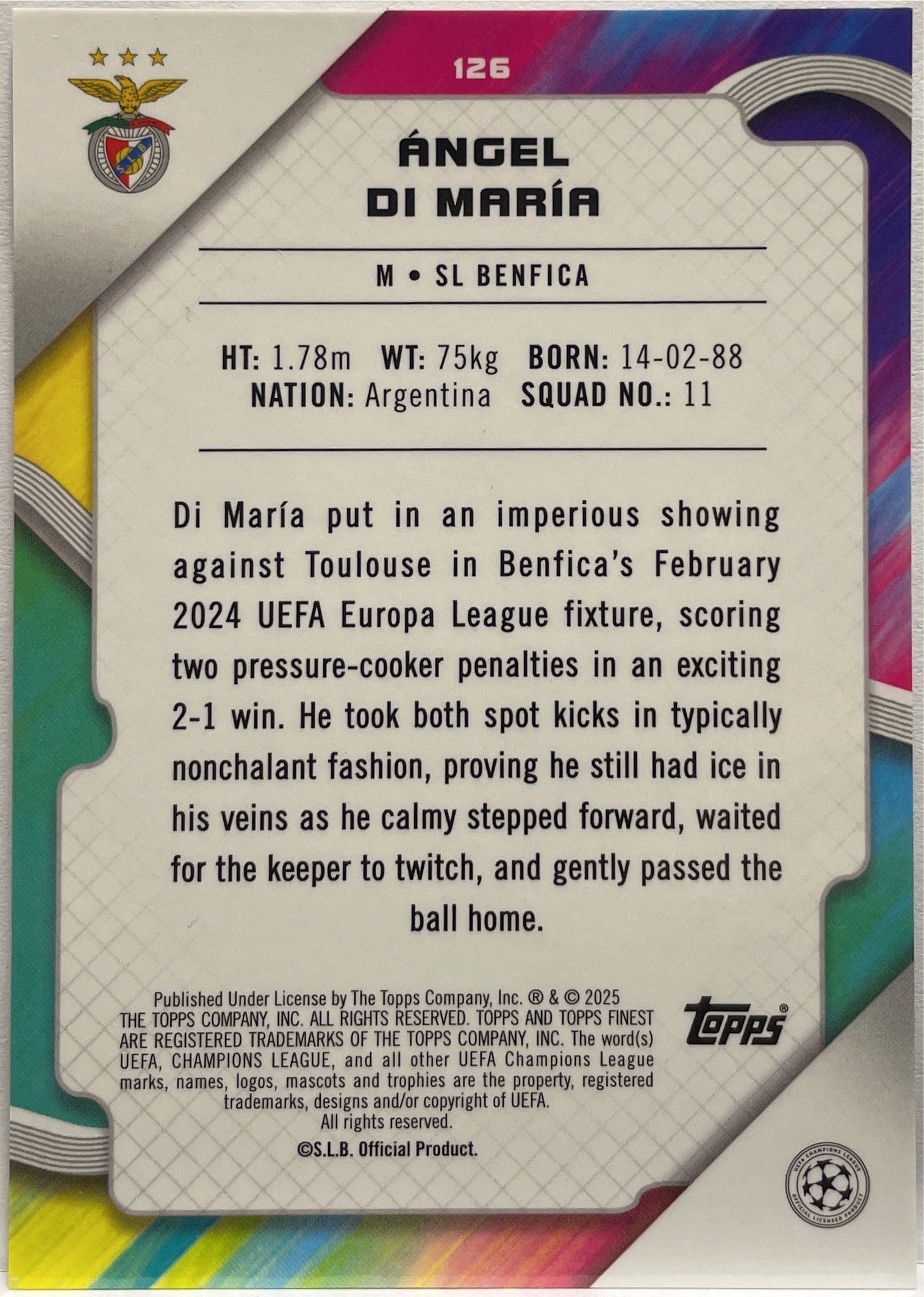Angel Di Maria 49/50 Gold Topps Finest UCC 2024/25 SL Benfica