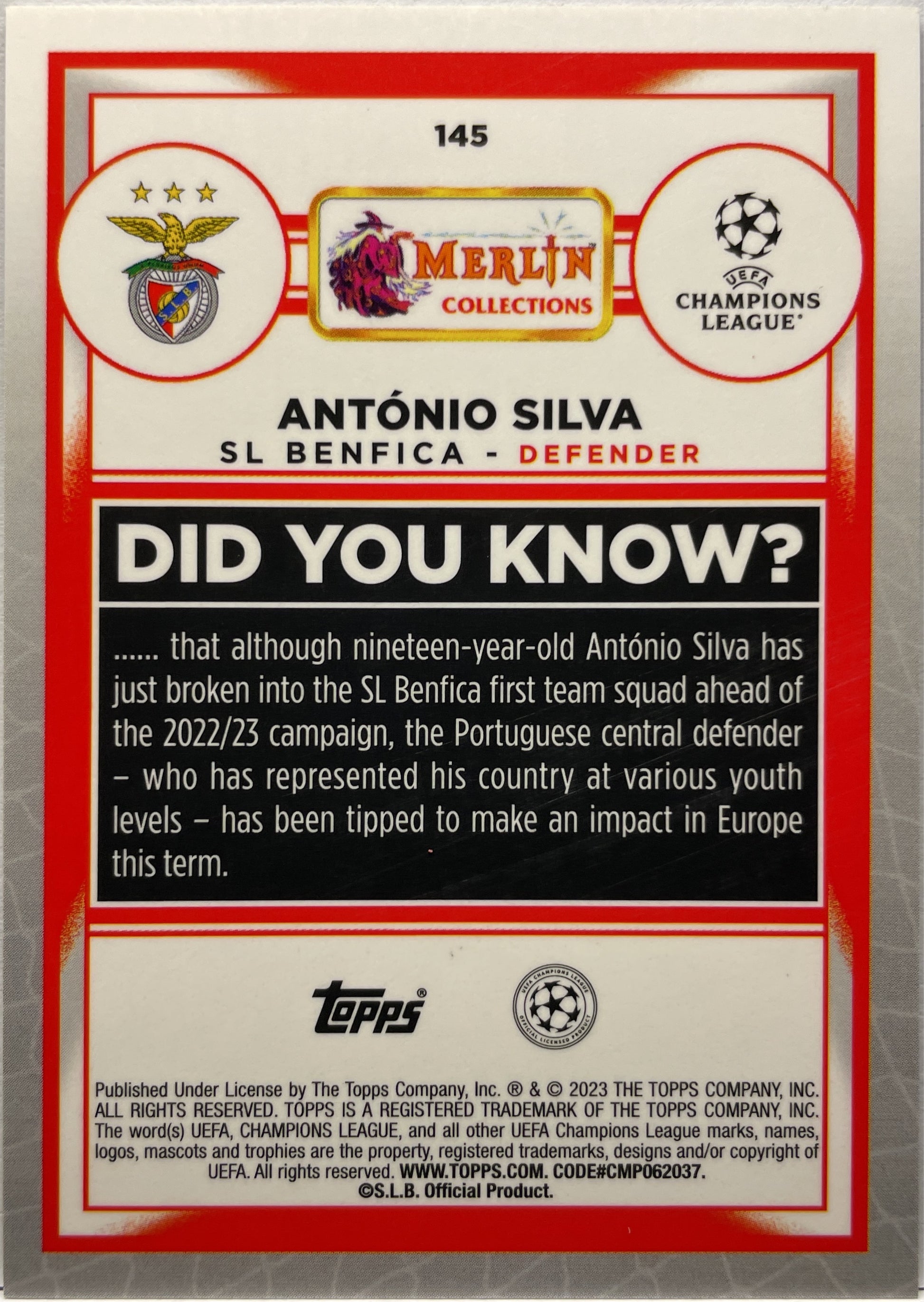 Antonio Silva 61/75 Rookie Blue Topps Chrome Merlin 2022/23 SL Benfica
