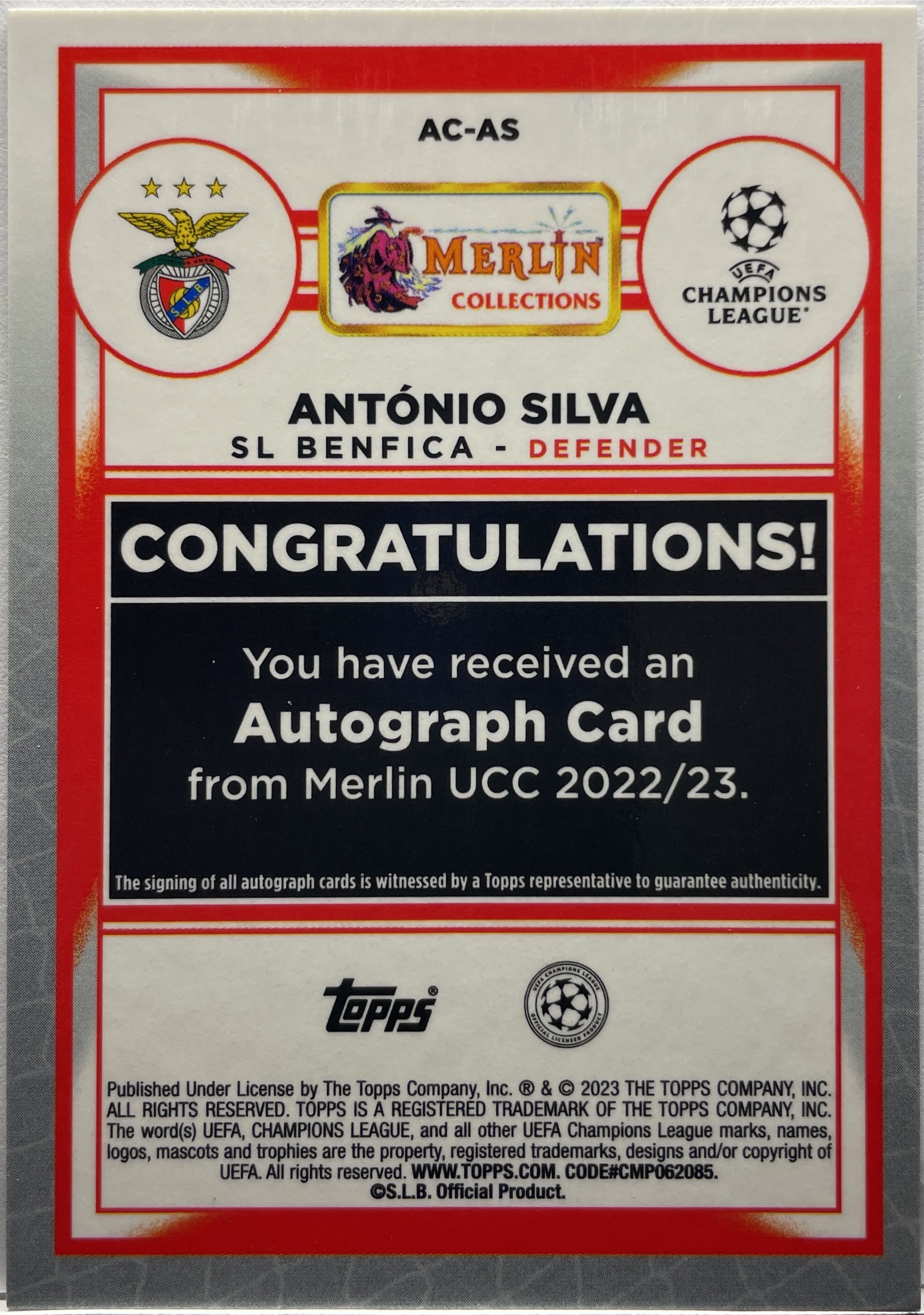 Antonio Silva Rookie Autograph Topps Chrome Merlin 2022/23 SL Benfica