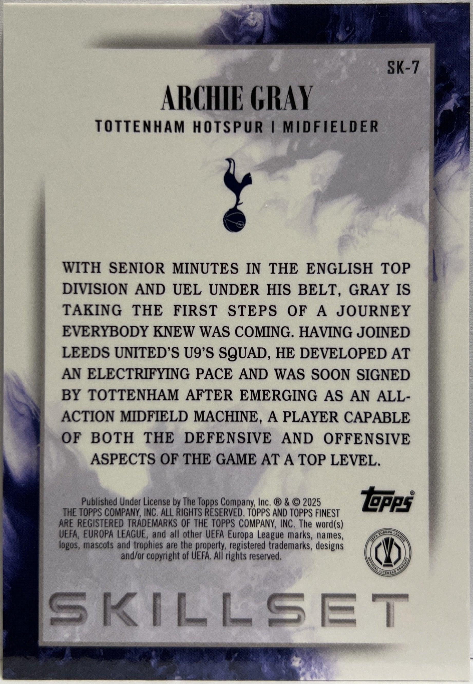 Archie Gray 169/299 Rookie Skillset Purple Topps Finest UCC 2024/25 Tottenham