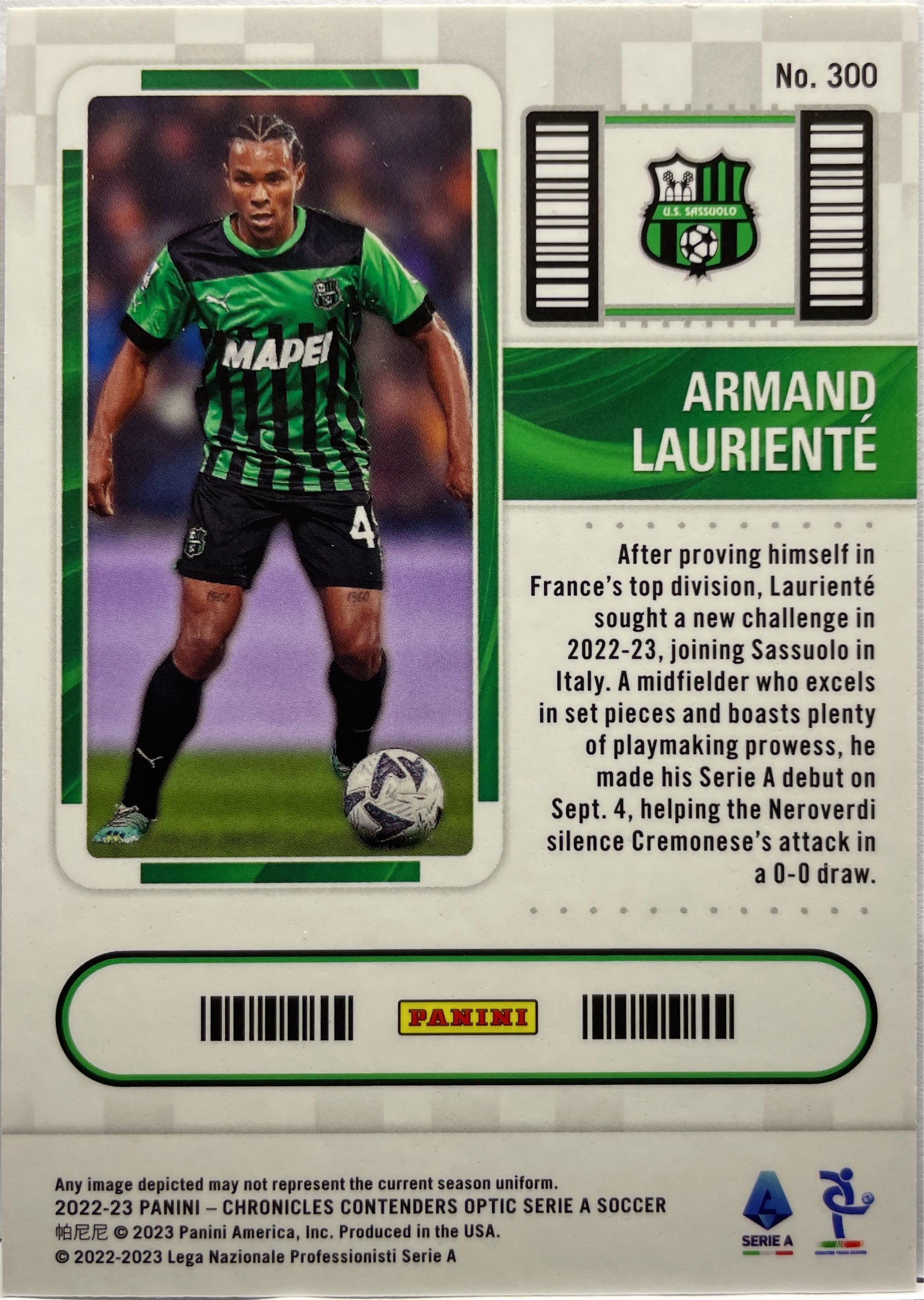 Armand Lauriente Rookie Ticket Contenders Optic Chronicles 2022/23 US Sassuolo Calcio