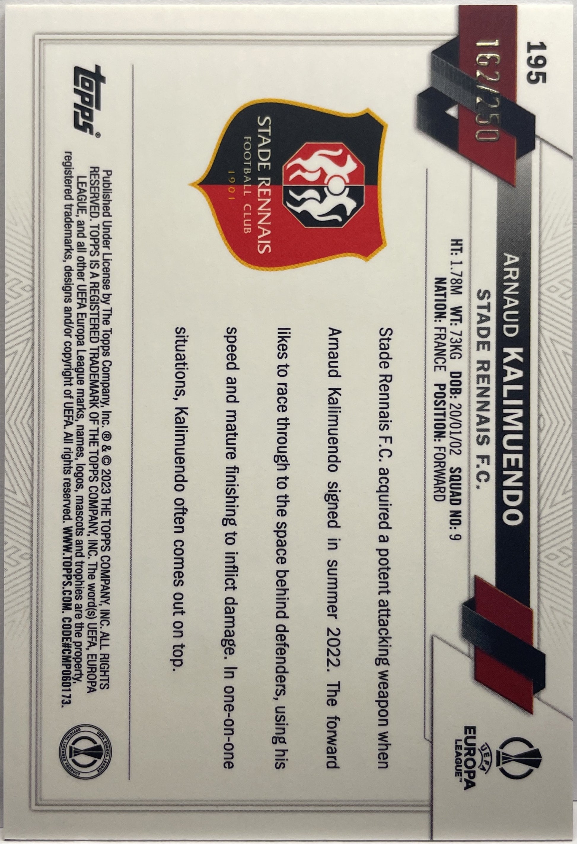 Arnaud Kalimuendo 162/250 Rookie Pink Topps Chrome UCC 2022/23 Stade Rennais FC