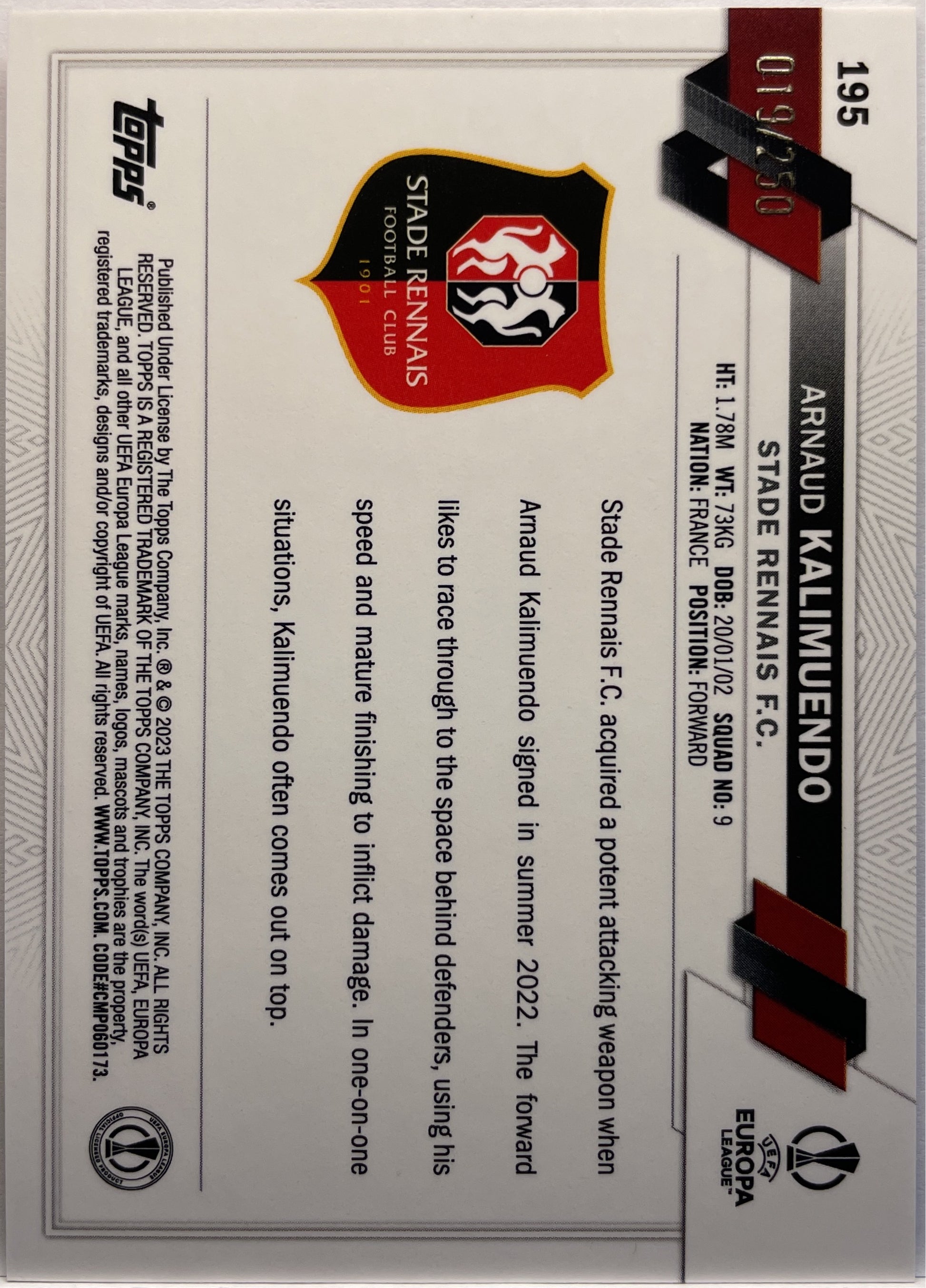 Arnaud Kalimuendo 19/250 Rookie Pink Topps Chrome UCC 2022/23 Stade Rennais FC