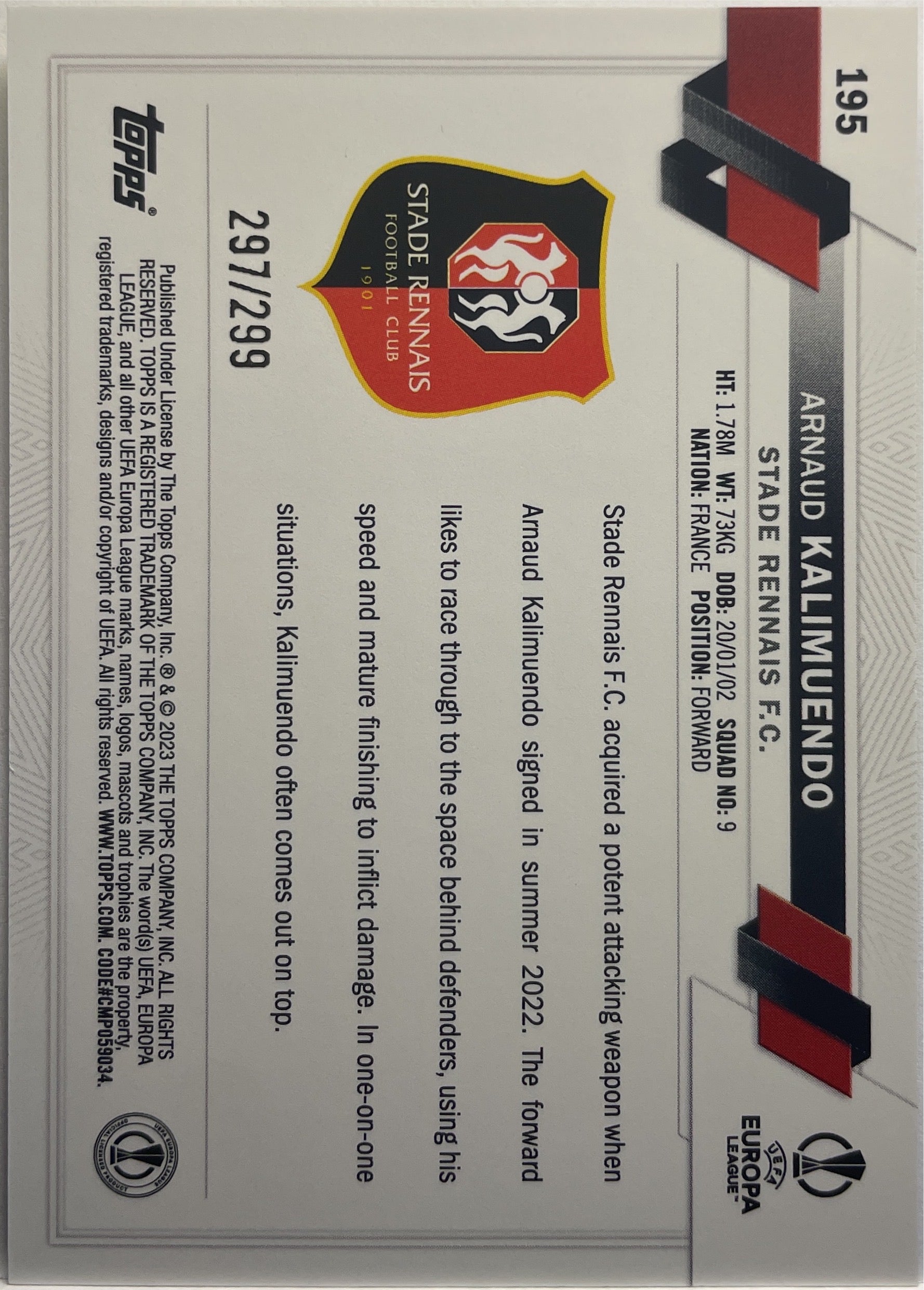 Arnaud Kalimuendo 297/299 Rookie Yellow Foil Topps UCC 2022/23 Stade Rennais F.C.