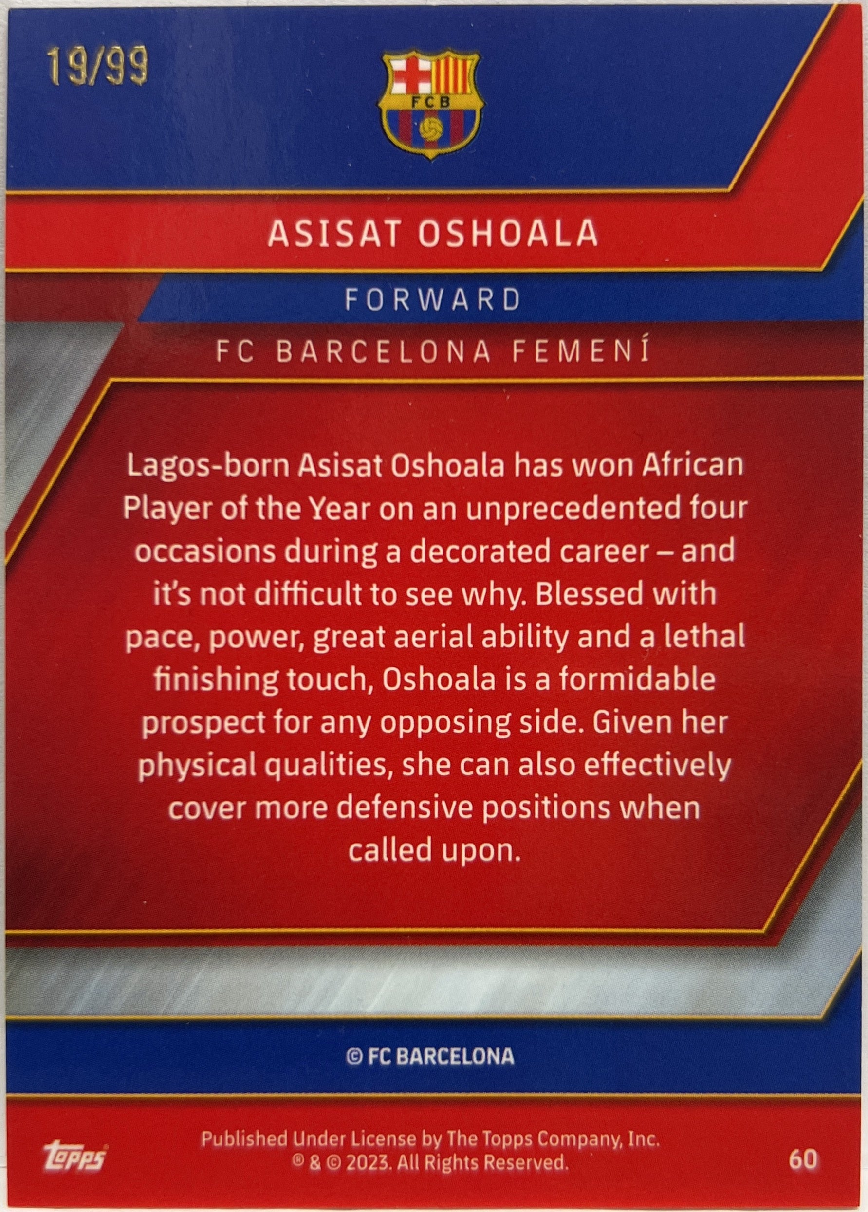 Asisat Oshoala 19/99 Topps Chrome Barcelona 2022/23