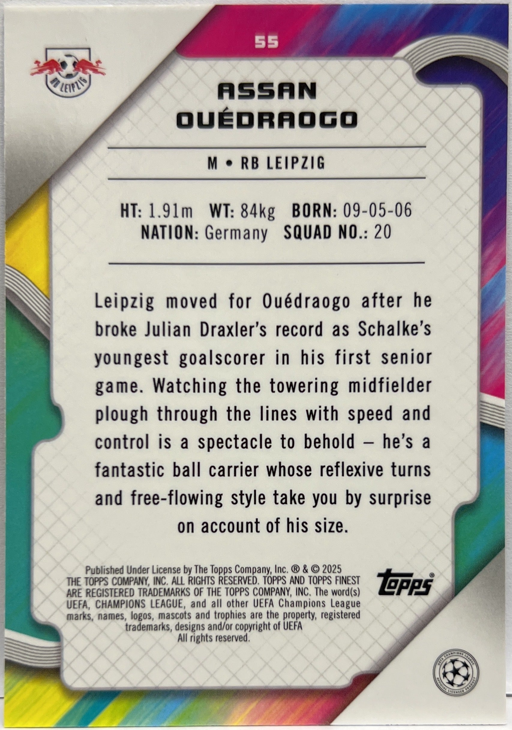 Assan Ouedraogo 95/275 Rookie Sky Blue Topps Finest UCC 2024/25 RB Leipzig