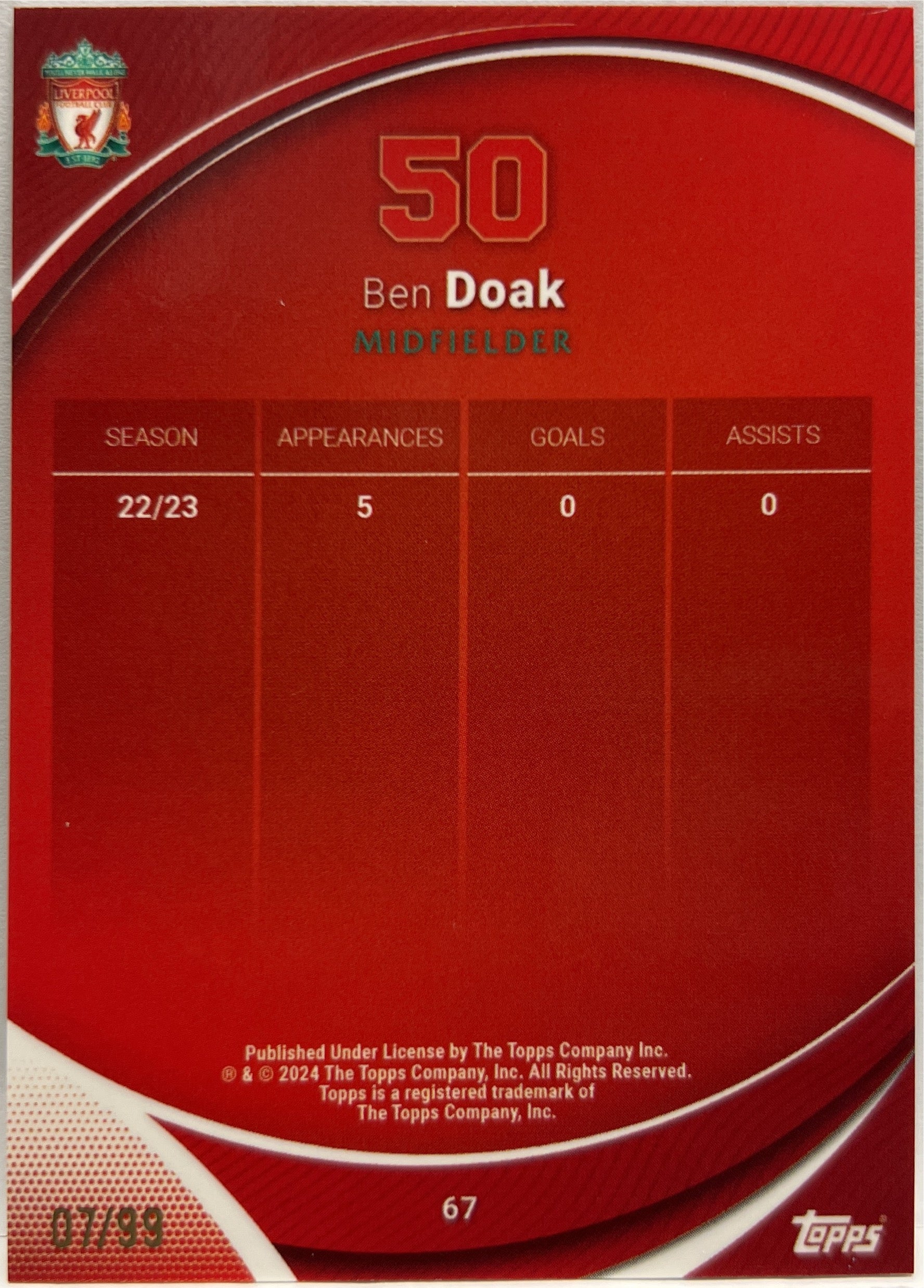 Ben Doak 7/99 Rookie Heroes Of Today Aqua Topps Chrome Liverpool 2023/24