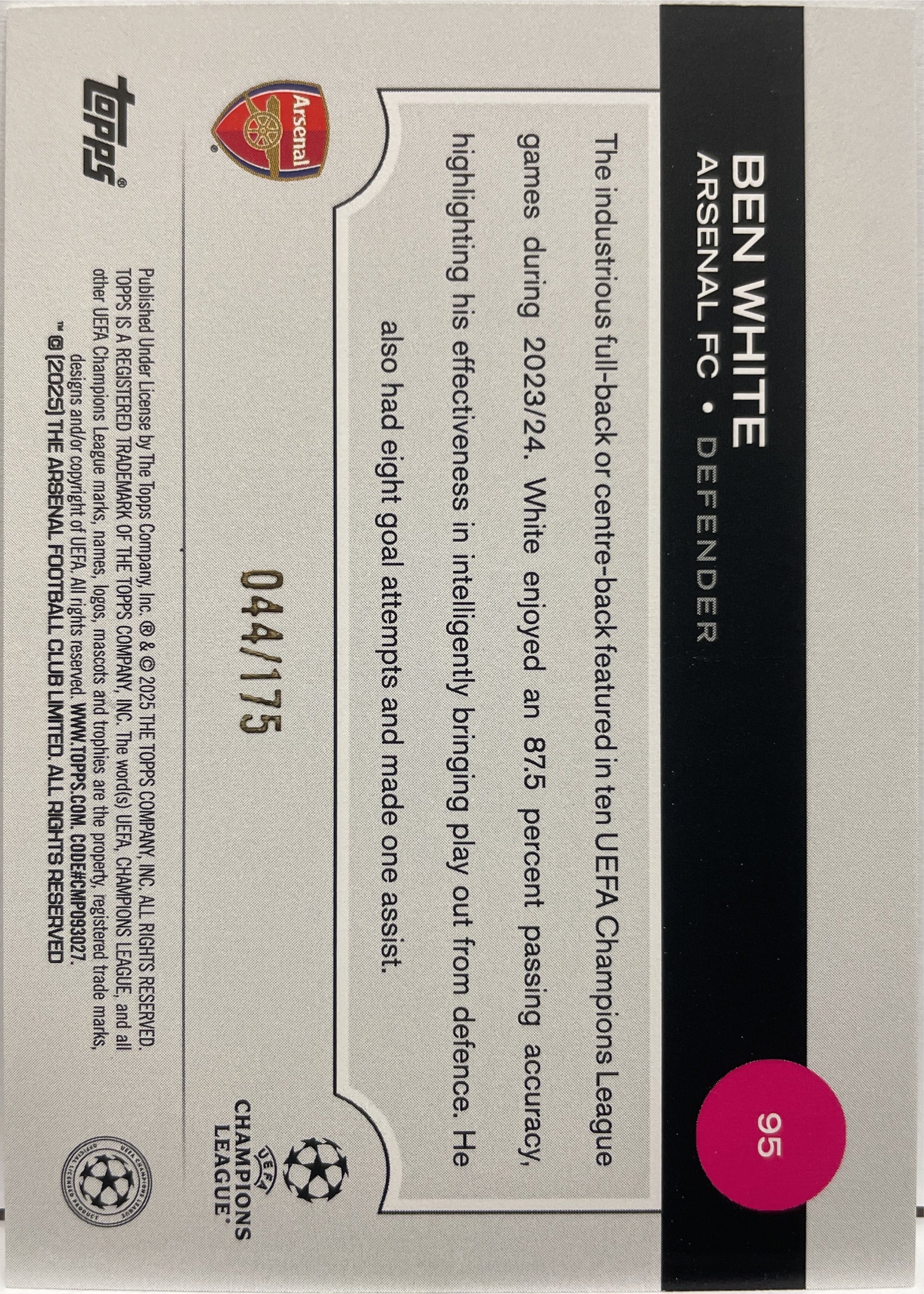 Ben White 44/175 Yellow Topps UCC 2024/25