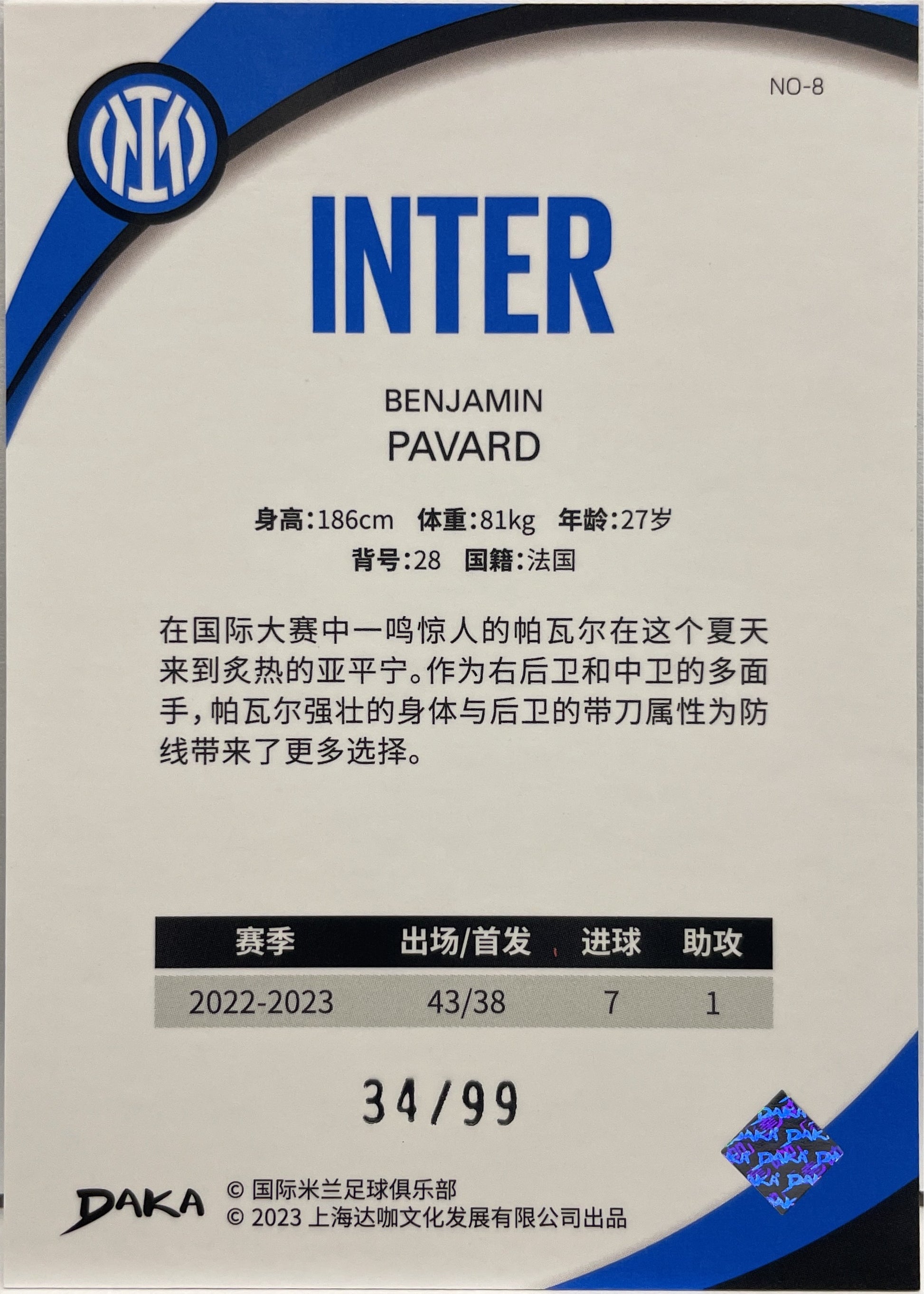 Benjamin Pavard 34/99 Daka x Inter 2022/23