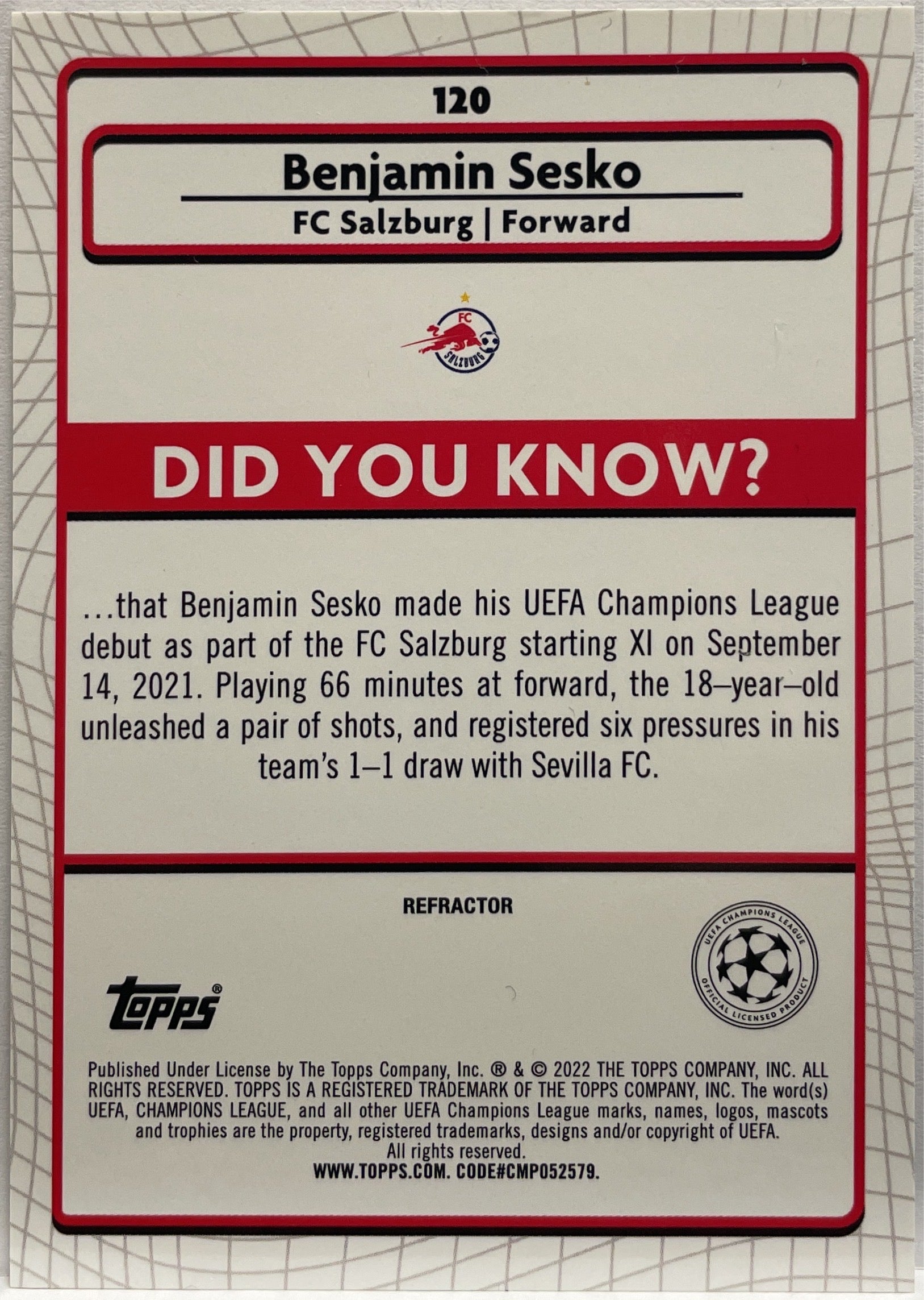 Benjamin Sesko Rookie Refractor Merlin Chrome 2021/22 FC Salzburg