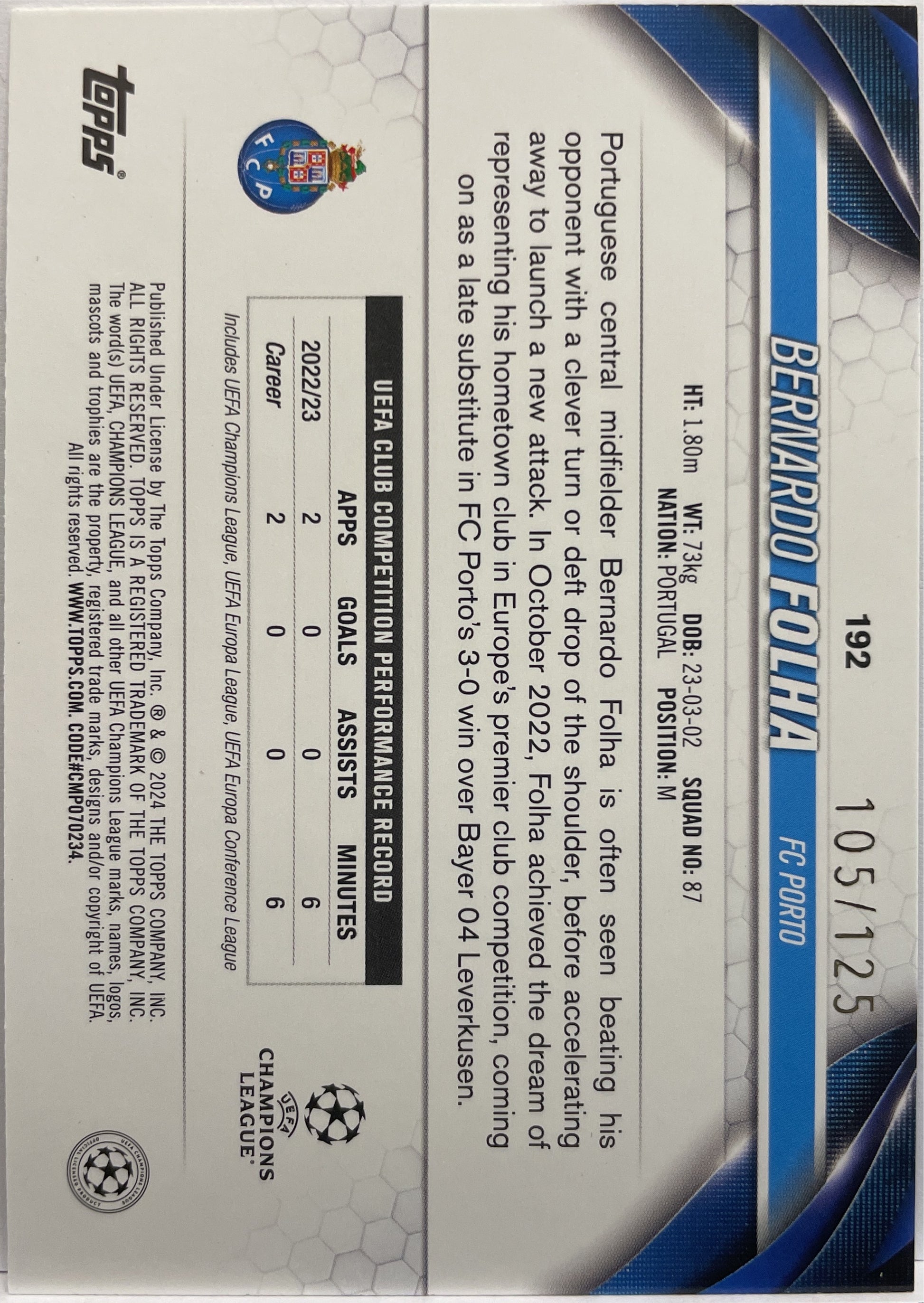 Bernardo Folha 105/125 Rookie Topps UCC 2023/24 FC Porto