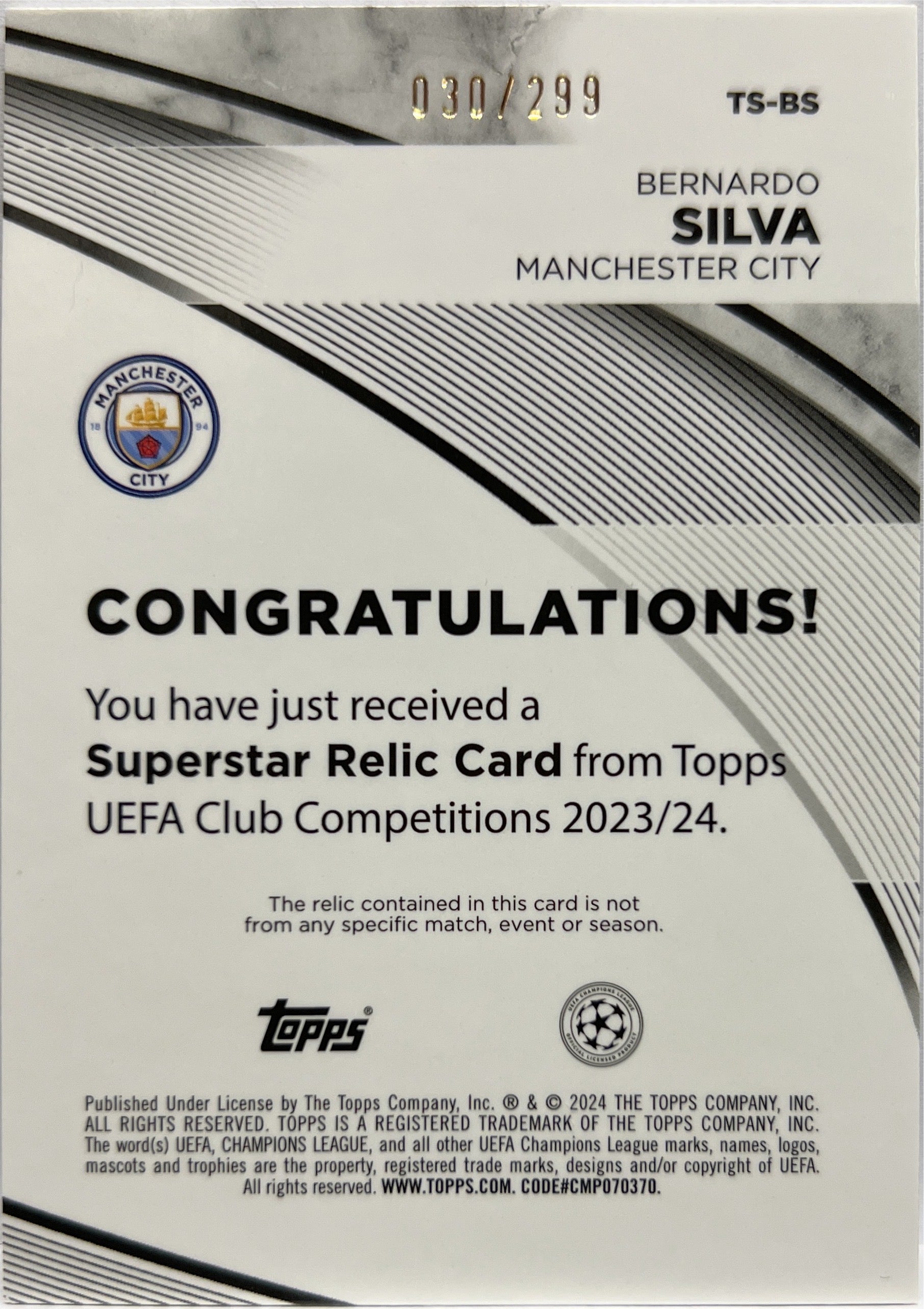 Bernardo Silva 30/299 Patch Topps UCC 2023/24 Manchester City