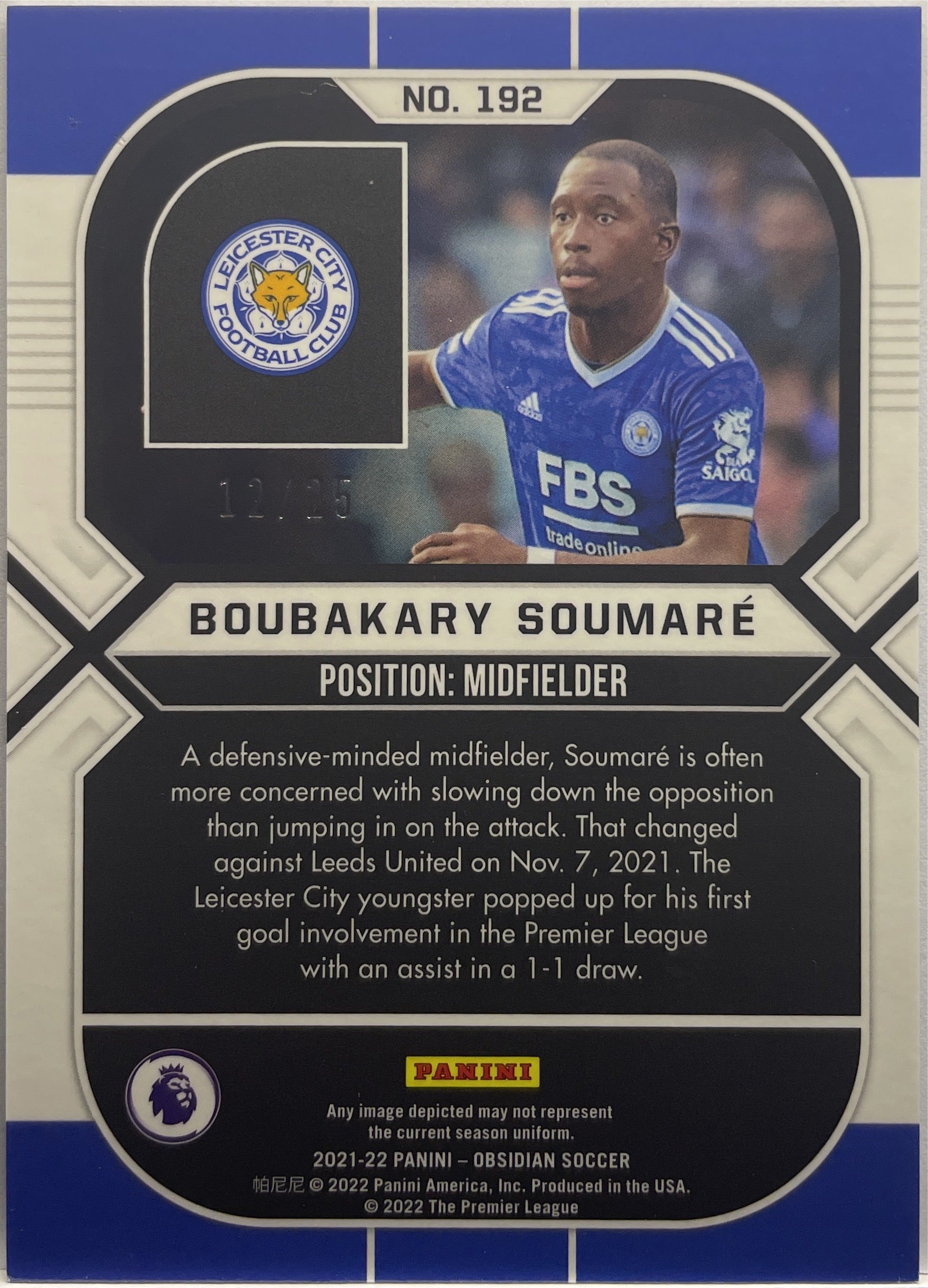 Boubakary Soumare 12/25 Rookie Orange Obsidian 2021/22 Leicester City