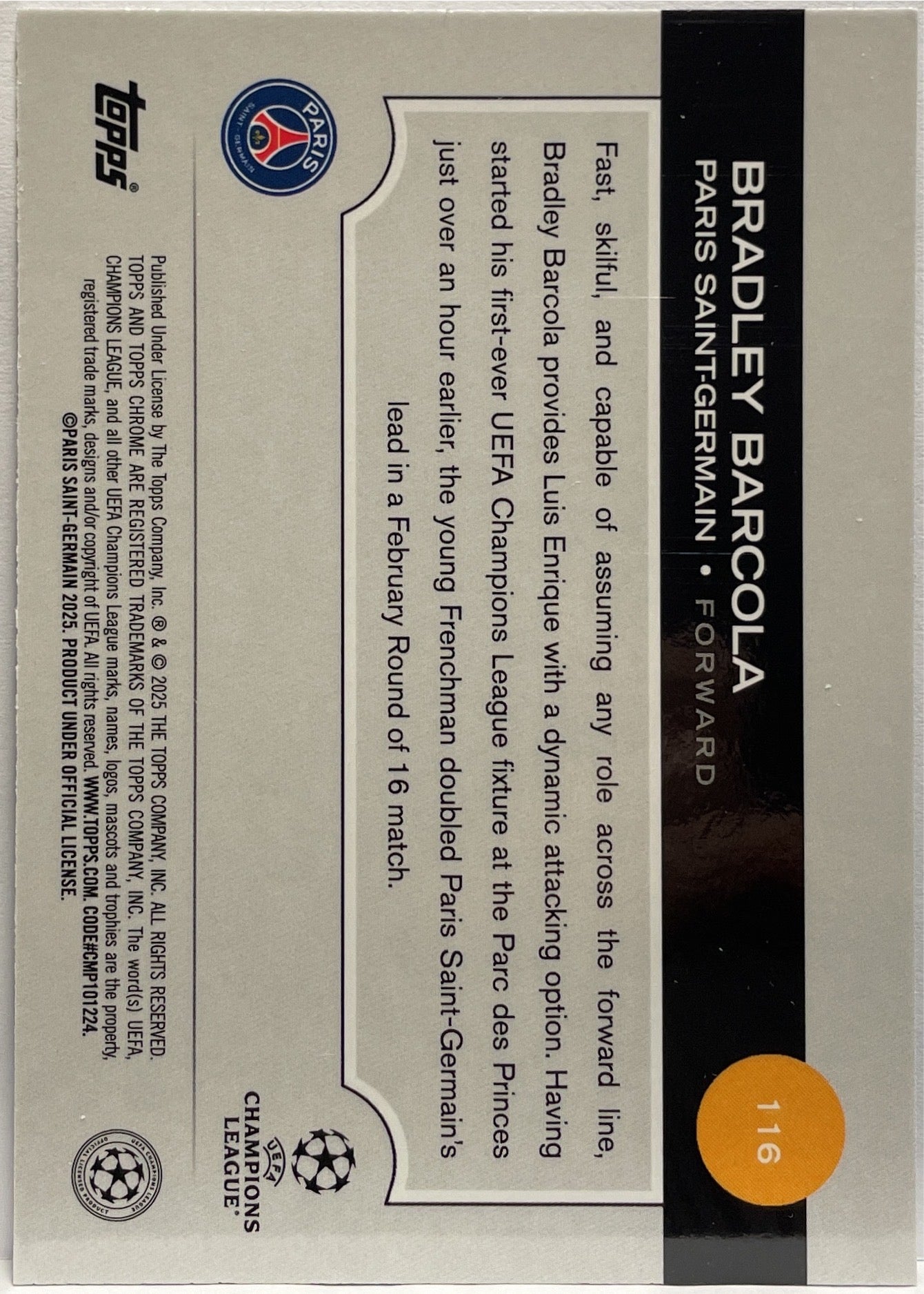 Bradley Barcola 148/150 Future Stars All Star Rookie Blue Topps Chrome UCC 2024/25 PSG
